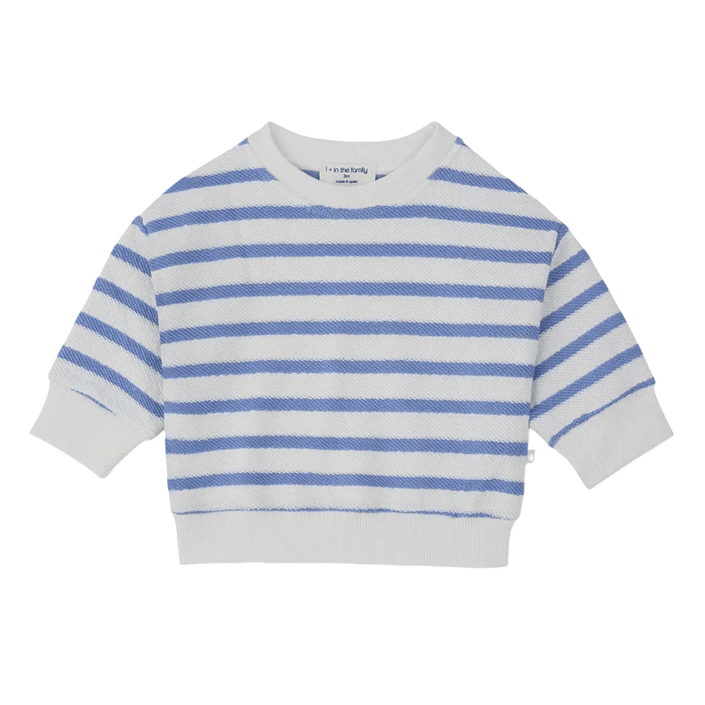 1+ In The Family Marroig Sweater Ultramarine. STRIPED FRENCH FLEECE. 100% co