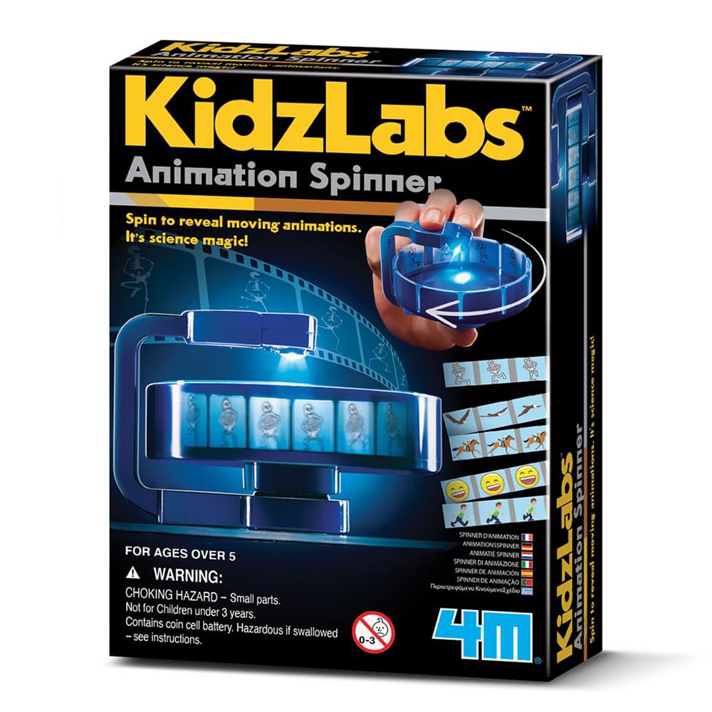 Door de spinner rond te draaien komen stilstaande afbeeldingen tot leven en ontstaat er een betoverende animatielus. Kinderen leren spelenderwijs hoe frame-voor-frame animatie werkt en ontdekken het principe van optische illusies.