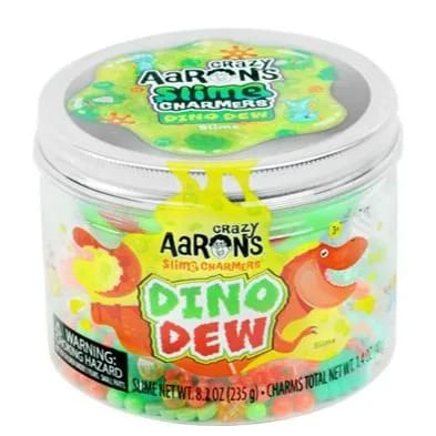 Beleef Jurassic-sized fun met de Crazy Aaron’s® Slime Charmers™ Dino Dew! Dit heldergroene, heerlijk rekbare slijm zit boordevol dinosaurusmagie. Met dino charms, kralen en een speelse bananengeur creëert je kind zijn eigen oertijdwereld – spannend, creatief en onweerstaanbaar satisfying.
