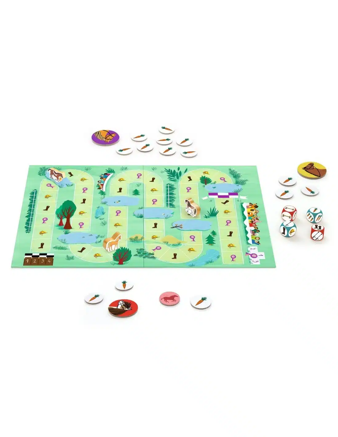 Galoppeer slim en win de race met Djeco Galop Malin, een spannend en strategisch bordspel voor kinderen vanaf 5 jaar én volwassenen! Kies verstandig tussen trotteren of galopperen, want elke beslissing beïnvloedt de energie van je paard en je kans op de overwinning. Alleen de juiste combinatie van strategie en snelheid leidt je naar de finish.