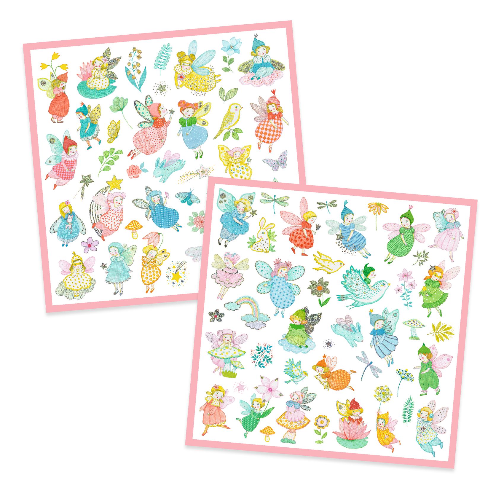 Djeco Glinsterende Feeën. 160 papieren stickers. 160 stickers om naar wens te plakken. Metallic zones die de stickers een mooie glans geven. 2 verschillende vellen in 2 exemplaren om je favoriete stickers opnieuw te gebruiken.