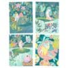 Djeco kraskaarten L’Etang. Een mapje met 4 kraskaarten met iriserend effect voor een mooie wandeling langs het water vol verrassingen. Het kind gaat met het houten pennetje over de motieven van de artiest heen en krast de bovenste laag weg. Als bij toverslag komen de illustraties geleidelijk aan tevoorschijn!