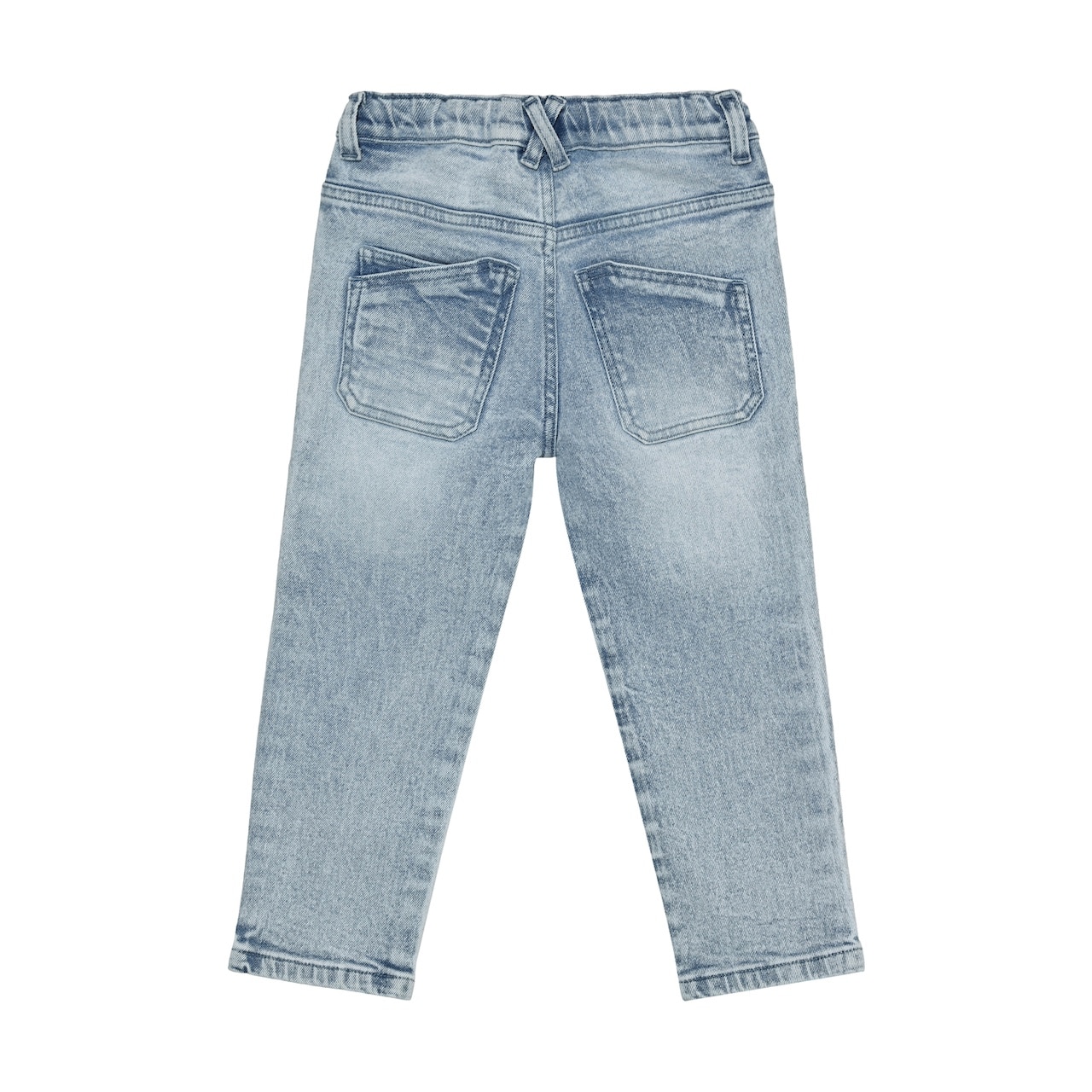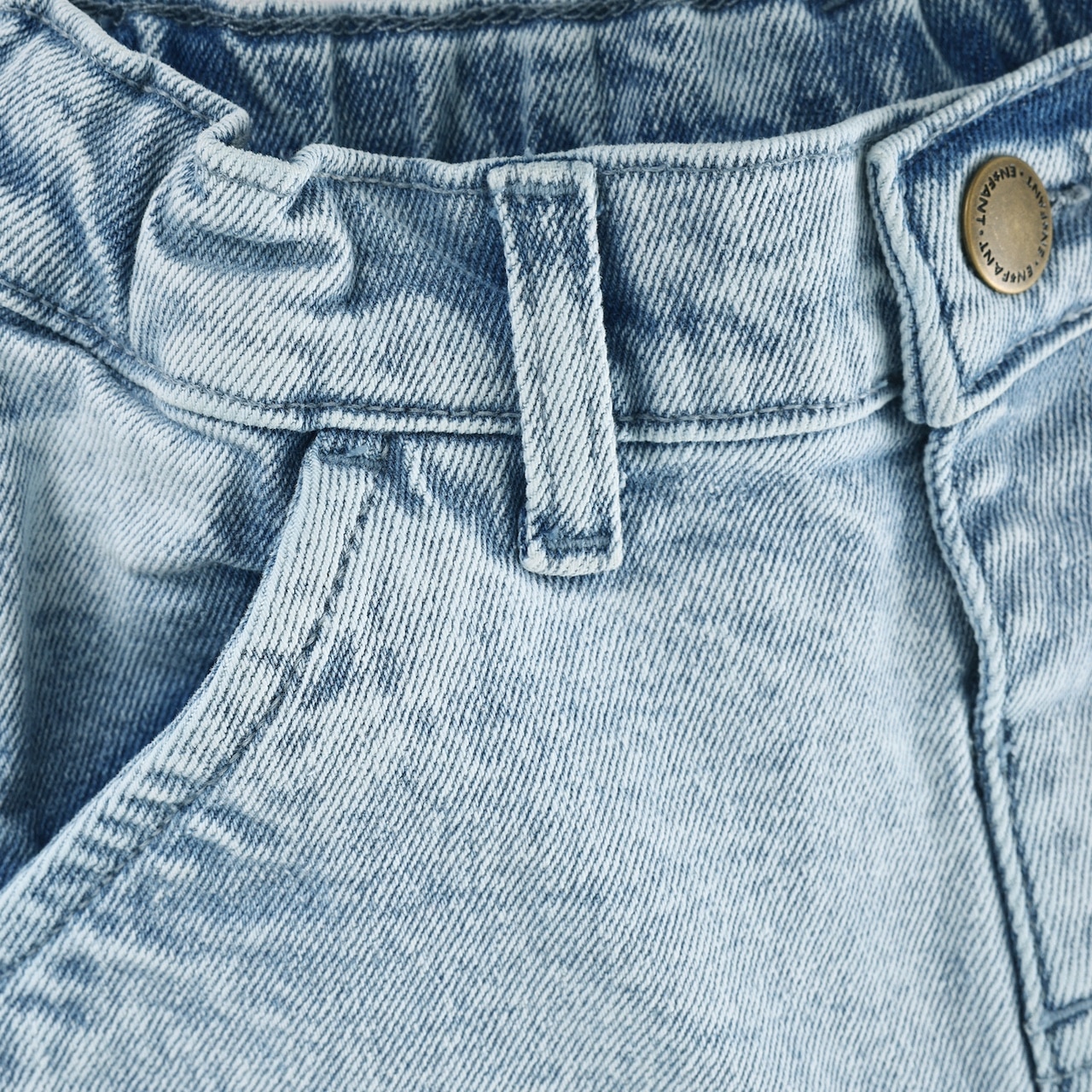 Enfant Jeans Denim Light Blue Denim. Denim jeans met brede pijpen van EN FANT. Deze spijkerbroeken hebben zakken aan de voor- en achterkant. Ze hebben elastiek en verstelbare taille en een gulp met rits. Gecertificeerd