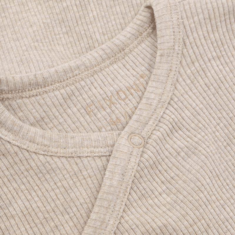 De FIXONI wrap romper sluit met drukknopen aan de zijkant en snaps tussen de beentjes, zodat verschonen snel en eenvoudig gaat. De fijne ribstructuur zorgt voor extra rekbaarheid en een comfortabele pasvorm die met je baby meebeweegt.