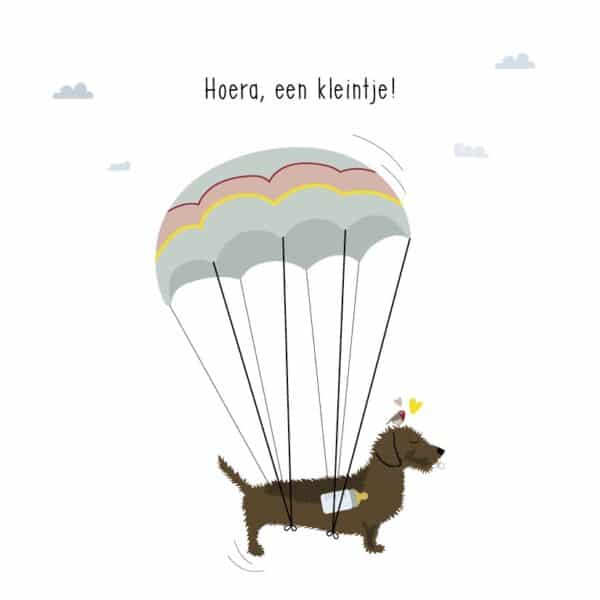 Frits Wenskaart Hoera, een kleintje!. Leuke geboortekaart met Frits de teckel.