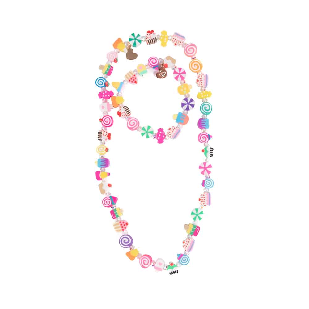 De Sweet Treats Necklace & Bracelet Set is een heerlijk vrolijke sieradenset boordevol kleur en speelsheid. Deze bijpassende ketting en armband zijn versierd met afwisselende kralen in de vorm van snoepjes, ijsjes en zoete desserts— een echte eyecatcher voor kinderen die dol zijn op kleur en fantasie.