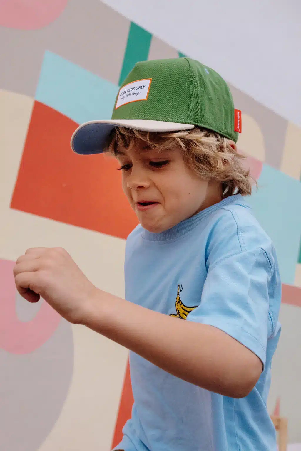 Op zoek naar een trendy en duurzame pet voor je kleintje? De Mini Olea Cap van Hello Hossy is een unisex groene met beige must-have die overal bij past! Gemaakt van 100% organisch, Oeko-Tex gecertificeerd katoen, met een verstelbare sluiting en een gebogen klep voor extra comfort en een gebogen klep voor extra comfort.