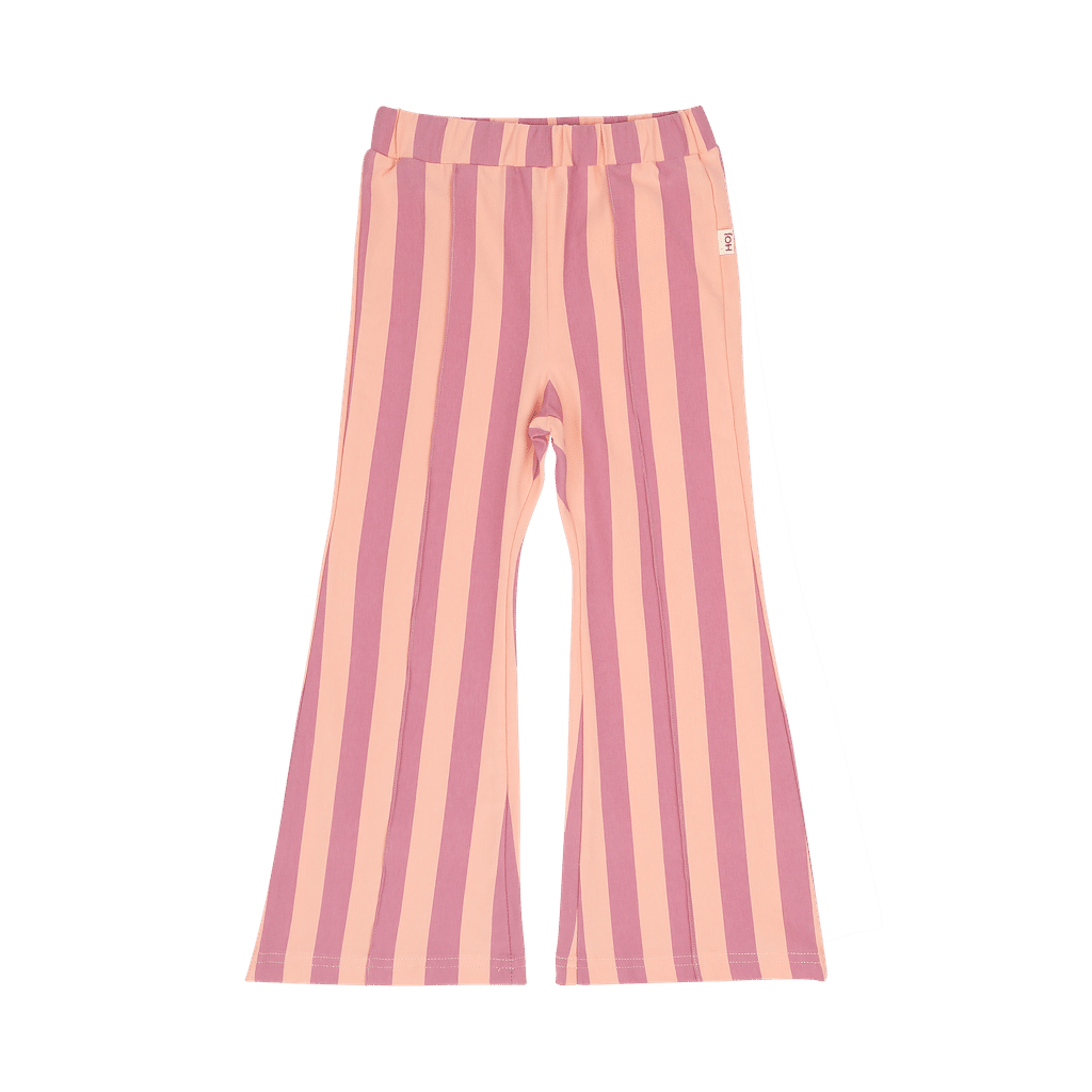 House of Jamie Flared Pants Violet Bellini Stripes. Maak kennis met de favoriet van je dochter; de Uitlopende Broek! Dit trendy item zou zeker in elke garderobe moeten zitten. Dit item is al vele seizoenen onze bestseller met een verbeterde pasvorm die nog beter is dan voorheen. En hij komt dit seizoen in vier prachtige opties.
