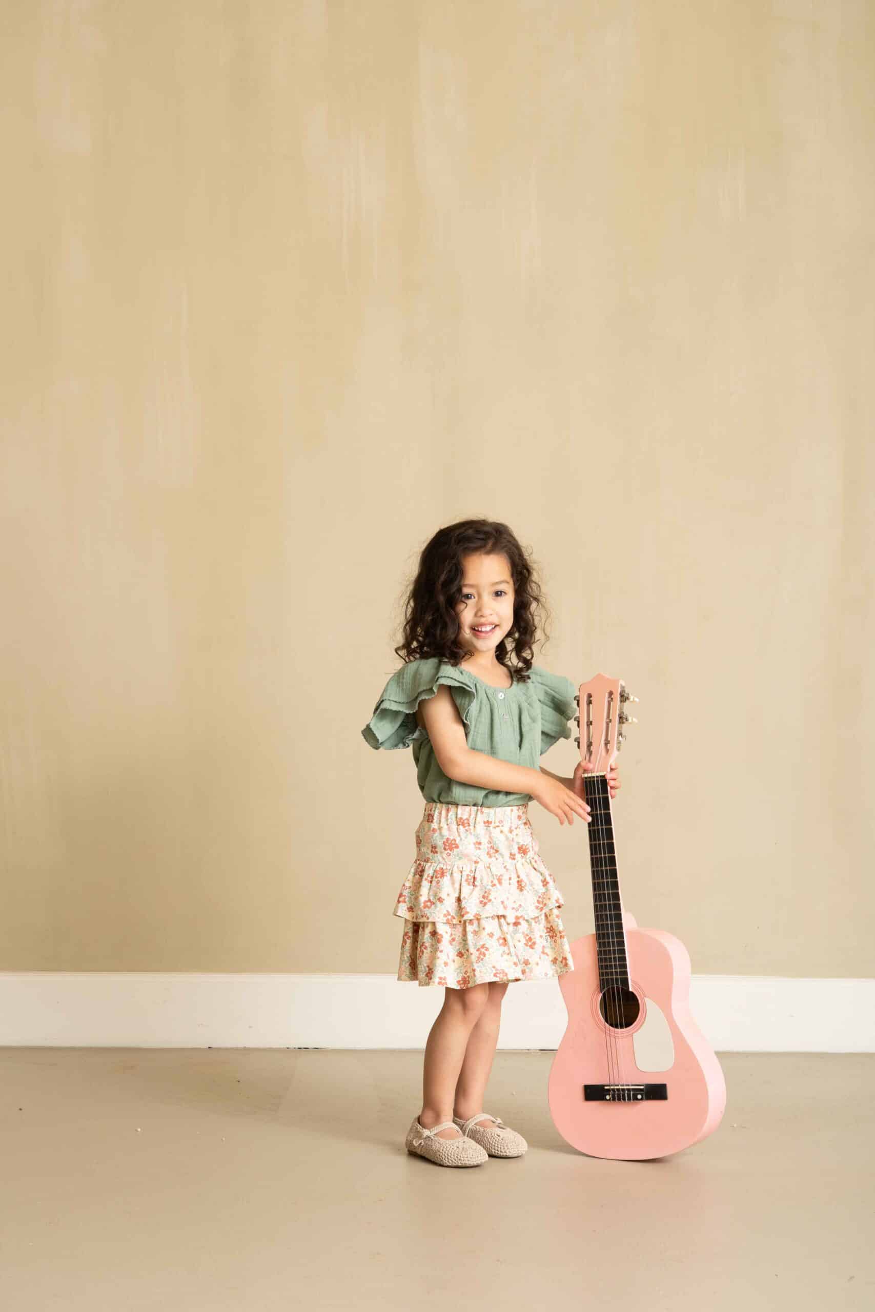 De rok heeft een fijne elastische tailleband, waardoor hij makkelijk aan te trekken is en heerlijk zit. De twee lagen gerimpelde ruches geven de rok extra volume en “body”, zodat hij prachtig meebeweegt bij elke stap. De Flowerbomb print maakt ‘m extra speels en kleurrijk — echt zo’n item waar meisjes blij van worden!