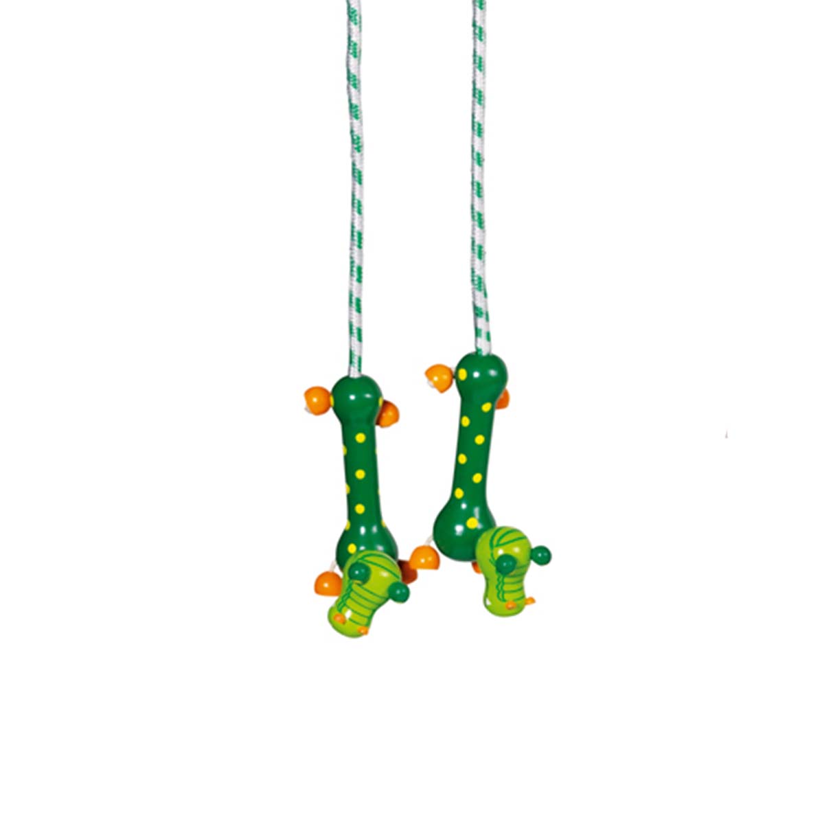 De stevige houten handvatten liggen fijn in kleine handen en maken dit springtouw tot een duurzaam stuk houten speelgoed waar kinderen lang plezier van hebben.