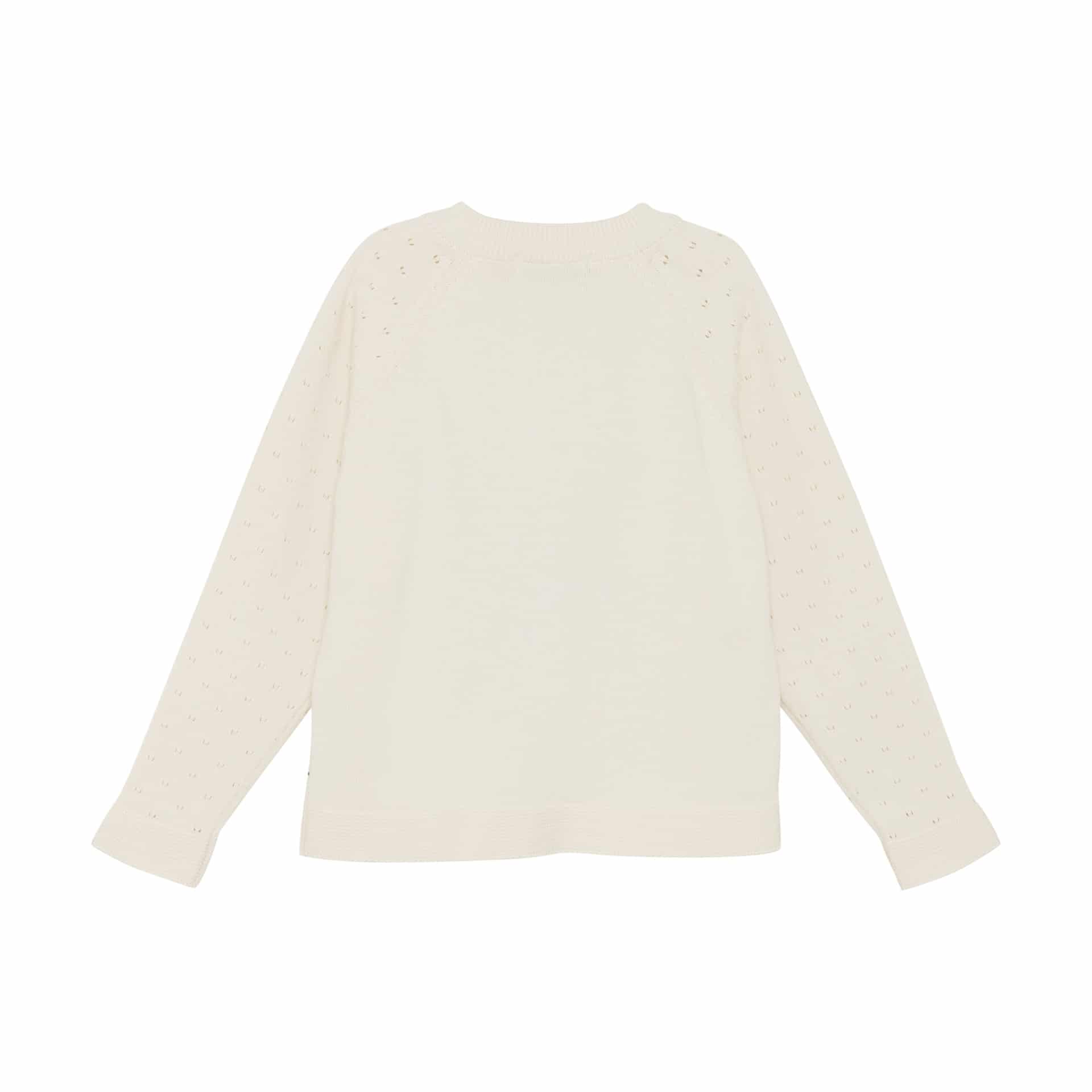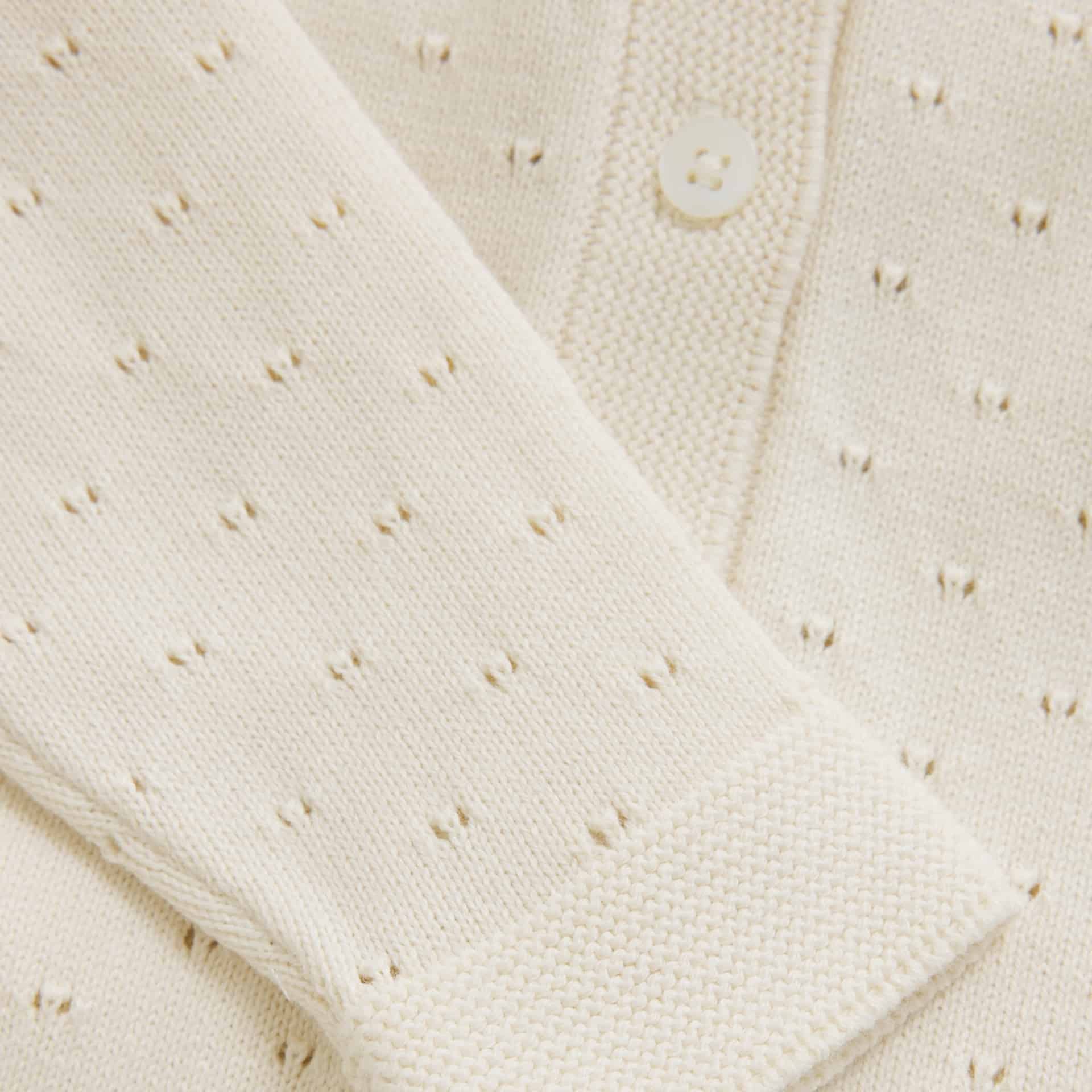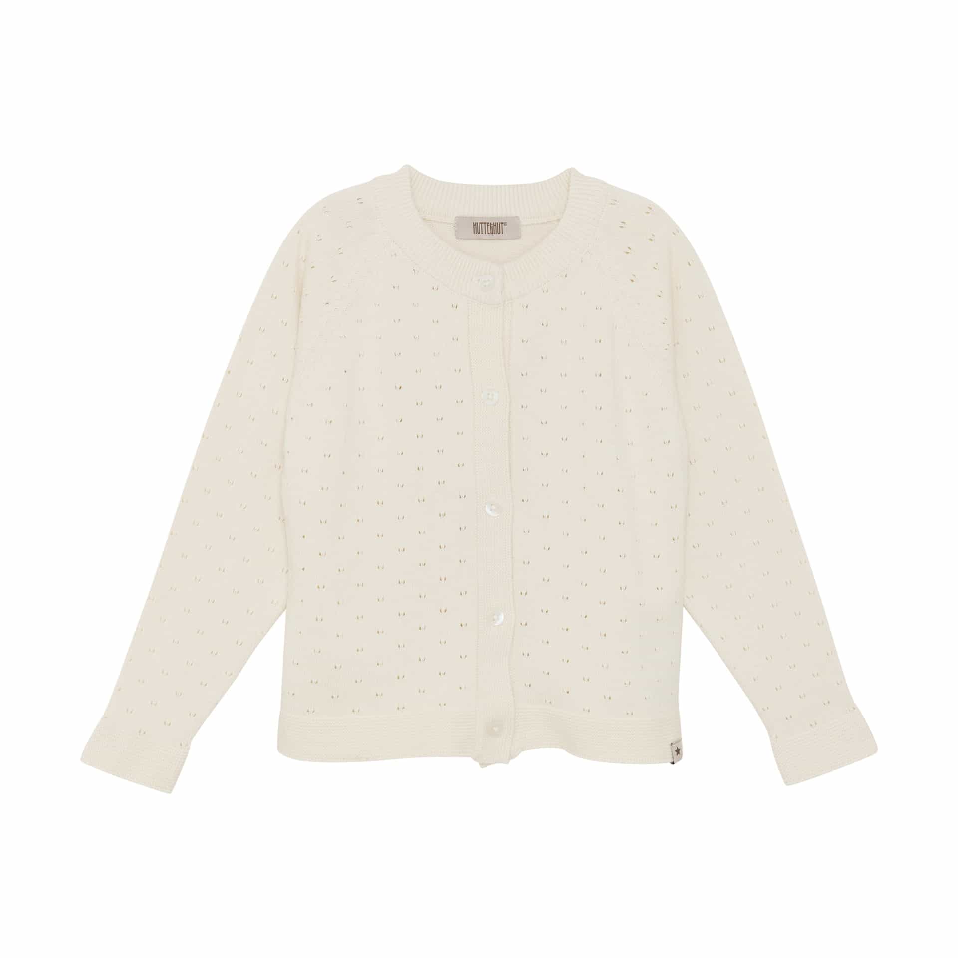 Cardigan from HUTTEliHUT with a pointelle pattern and raglan sleeves. It can be opened at front with mother-of-pearl buttons. Certified acc. to GOTS – organic CERES-0366