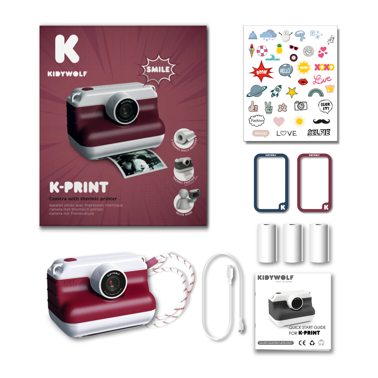 De K-PRINT is een leuke en gebruiksvriendelijke instantcamera voor kinderen vanaf 8 jaar. Dankzij thermisch printen maakt de camera direct zwart-witte prints, zónder inkt, cartridges of gedoe. Print op papier of stickers, voeg creatieve filters toe en versier alles met de meegeleverde stickers. Perfect om herinneringen vast te leggen, te personaliseren en meteen te delen.