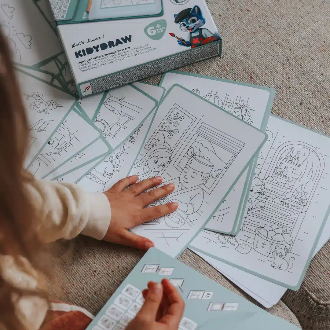 KIDYDRAW is een creatieve activiteit zonder scherm waarmee kinderen gemakkelijk leren tekenen dankzij een lichttafel en een magnetisch boekje met 30 illustraties om over te trekken. Het kind kiest een model, zet de achtergrondverlichting aan en kopieert de tekening stap voor stap, waarna het deze naar eigen inzicht kan inkleuren. Dit spel is leuk en leerzaam en ontwikkelt de precisie, concentratie en fijne motoriek, terwijl het de hand-oogcoördinatie versterkt. KIDYDRAW is ideaal voor kinderen vanaf 6 jaar en stimuleert de creativiteit en het zelfvertrouwen, terwijl het tegelijkertijd een moment van rust en plezier biedt.