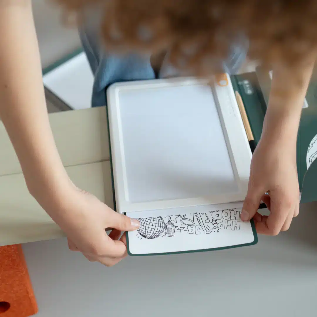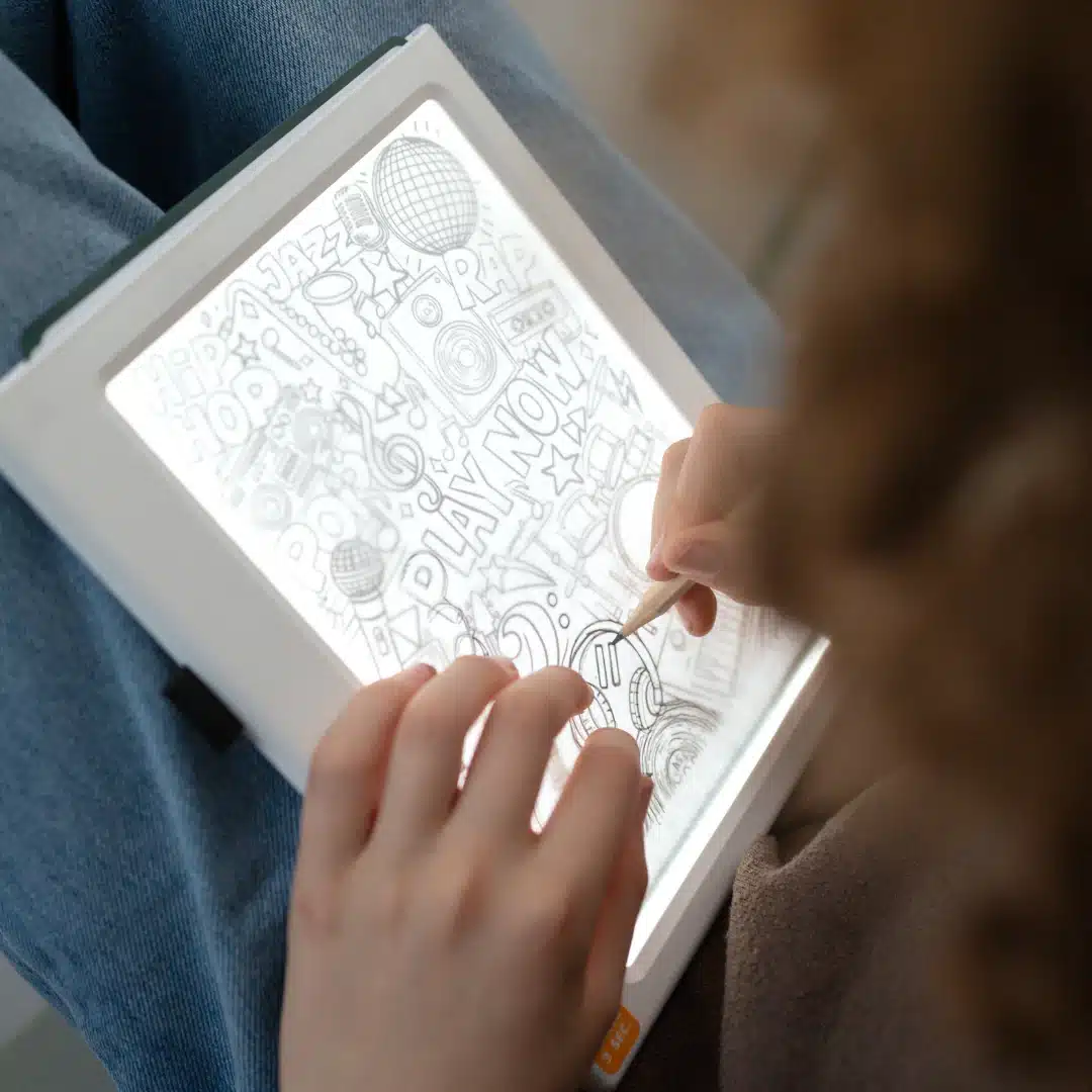 K-DRAW is een creatieve activiteit zonder scherm waarmee kinderen gemakkelijk leren tekenen dankzij een lichttafel en een magnetisch boekje met 30 illustraties om over te trekken. Het kind kiest een model, zet de achtergrondverlichting aan en kopieert de tekening stap voor stap, waarna het deze naar eigen inzicht kan inkleuren. Dit spel is leuk en leerzaam en ontwikkelt de precisie, concentratie en fijne motoriek, terwijl het de hand-oogcoördinatie versterkt. K-DRAW is ideaal voor kinderen vanaf 10 jaar en stimuleert de creativiteit en het zelfvertrouwen, terwijl het tegelijkertijd een moment van rust en plezier biedt.