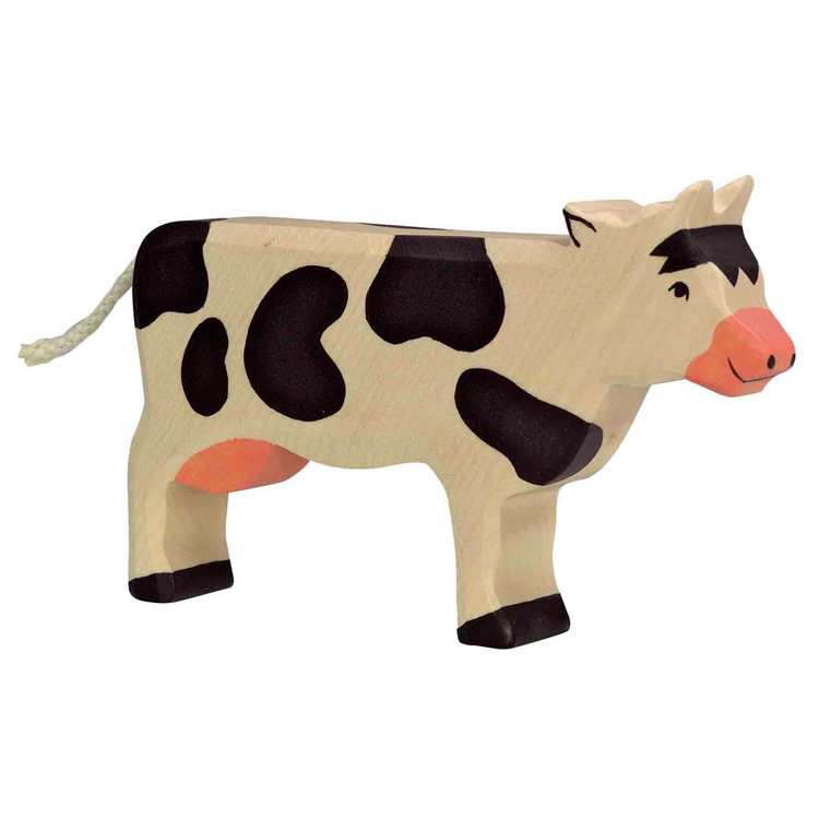 Holztiger Houten Koe Staand. Mooie koe uit de boerderij serie van het Holtztiger. De dieren van het Duitse merk Holztiger zijn prachtig vormgegeven en zijn voor kinderen een plezier om mee te spelen. De figuren worden met de hand gemaakt van massief esdoornhout.
