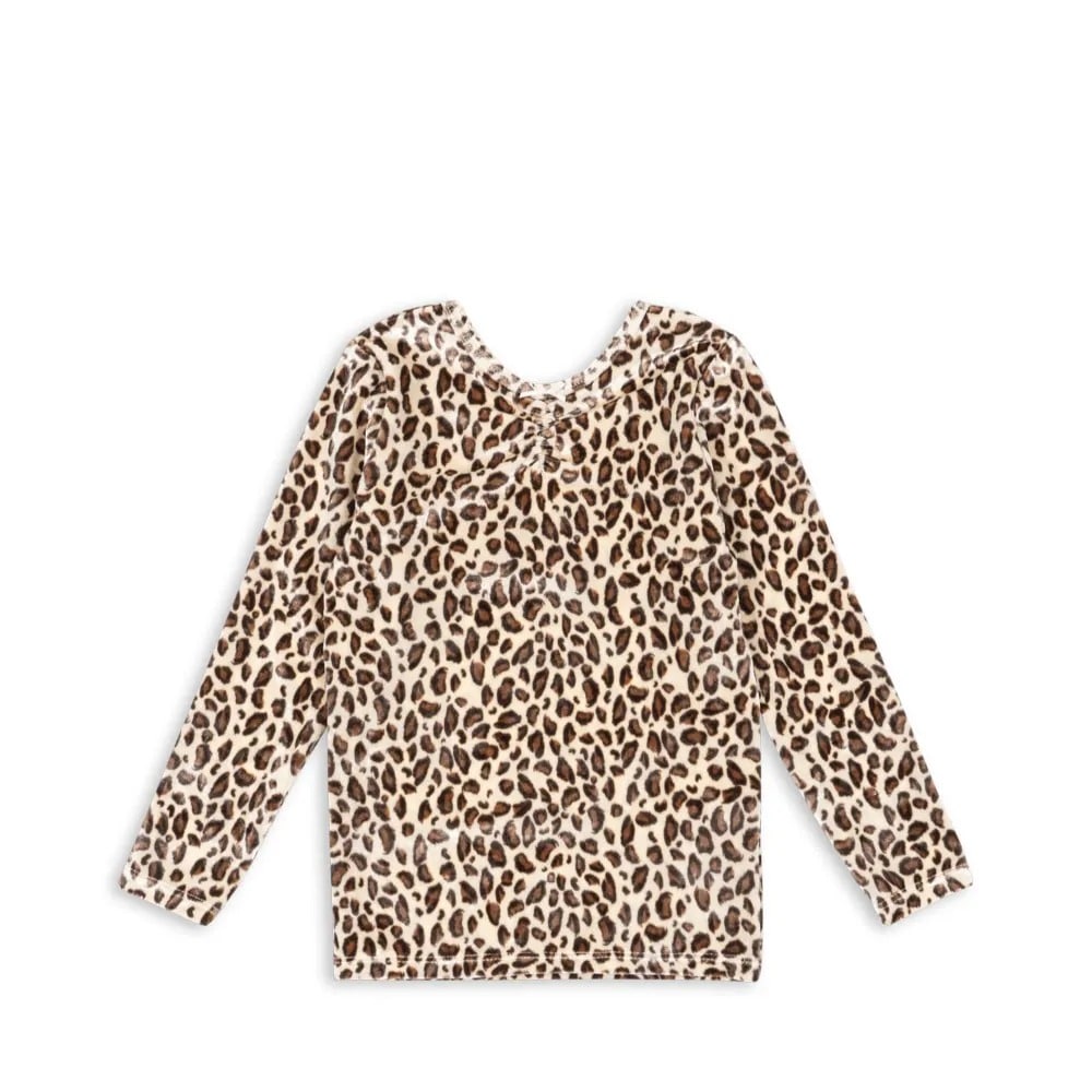 Konges Sløjd Carlito Blouse Grs Leo. Zachte fluwelen blouse met lange mouwen. Ontworpen met een laag uitgesneden rug en een slank silhouet.