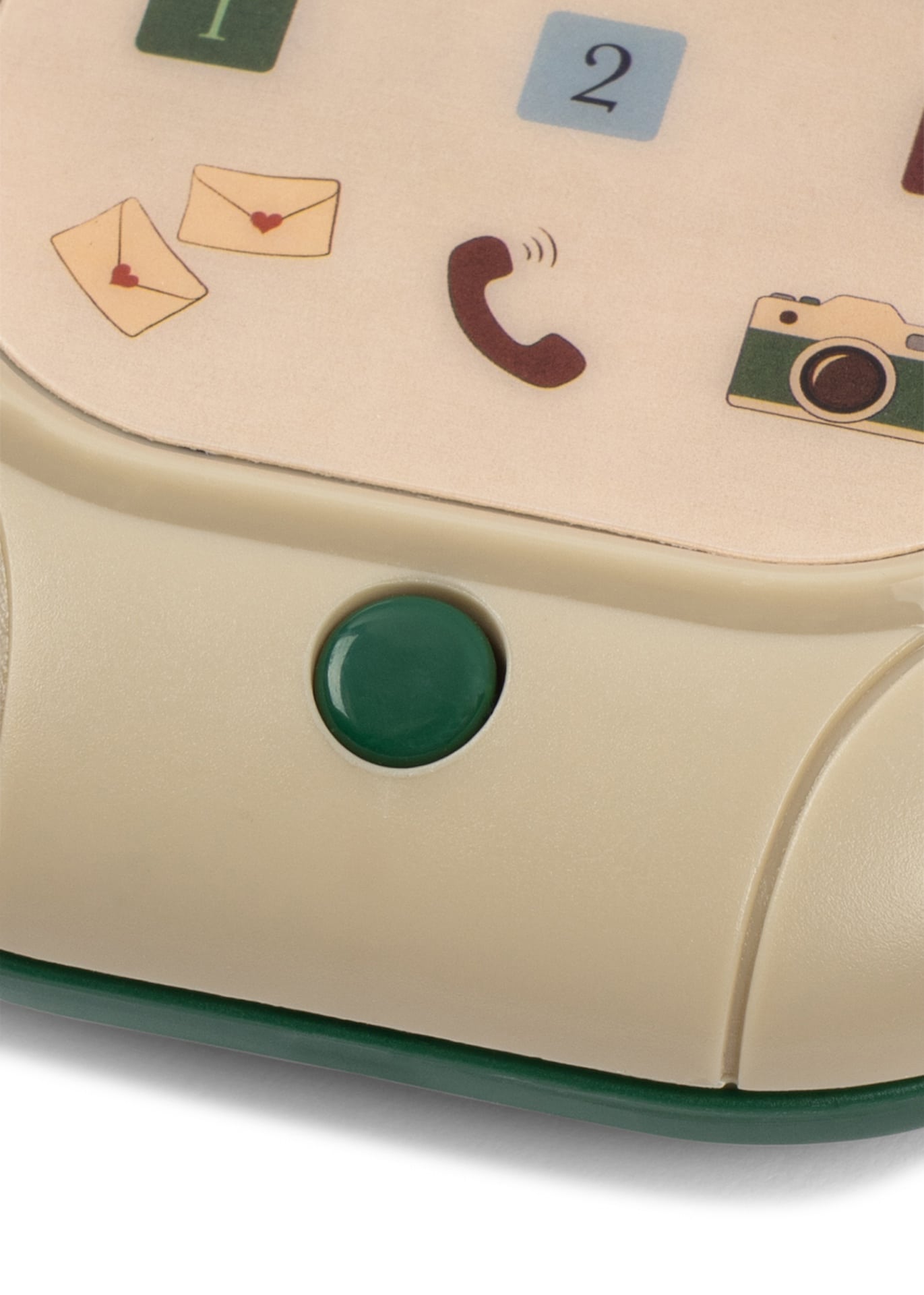 Konges Sløjd My First Phone Multi. ‘Mijn Eerste Telefoon’ laat je kleintje spelen met geluiden en knoppen die een echte mobiele telefoon simuleren, en biedt een eenvoudige visuele navigatie met kleine afbeeldingen die het gemakkelijk te gebruiken maken.