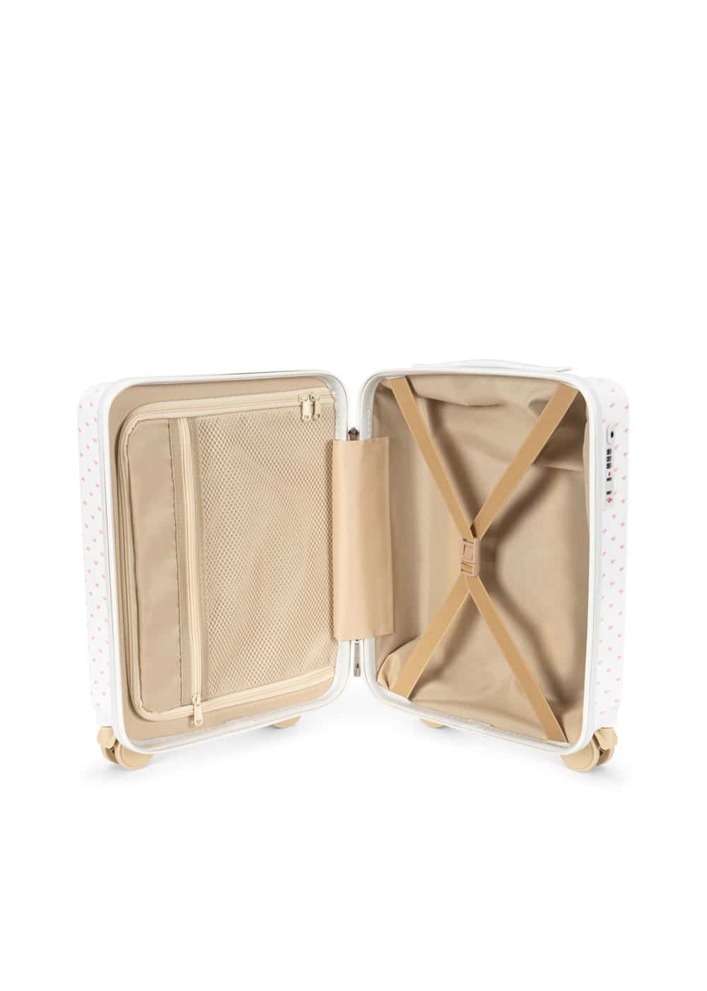 Konges Sløjd Travel Suitcase Kitty Gelateria. Koffer in cabineformaat met een lichtgewicht ontwerp, geschikt voor handbagage. Met harde buitenkant, vier dubbele wielen die 360 graden kunnen draaien en een goedgekeurd, ingebouwd en gecodeerd TSA LOCK®.