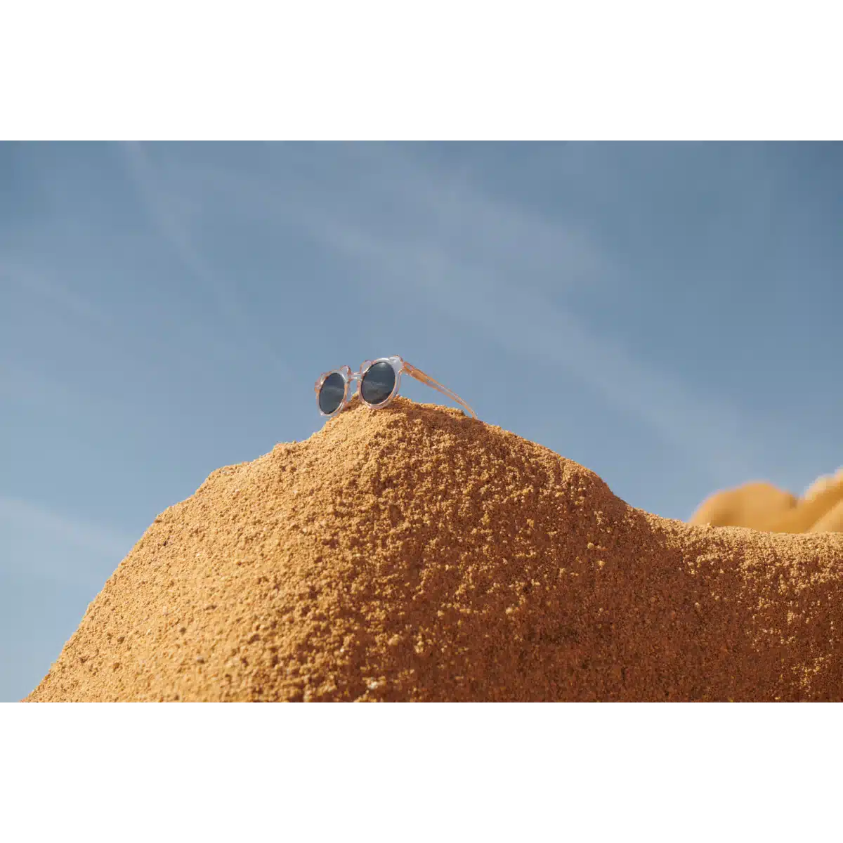 De Darla zonnebril is gemaakt van een lichtgewicht, stevig montuur van GRS-gecertificeerd gerecycled polycarbonaat. De glazen bieden 100% UV-bescherming (UV400, categorie 3) én zijn TAC gepolariseerd, wat zorgt voor prettig zicht in fel zonlicht. Dankzij de flexibele scharnieren (spring hinges) zit de bril comfortabel en kan hij tegen een stootje — ideaal voor actieve peuters.