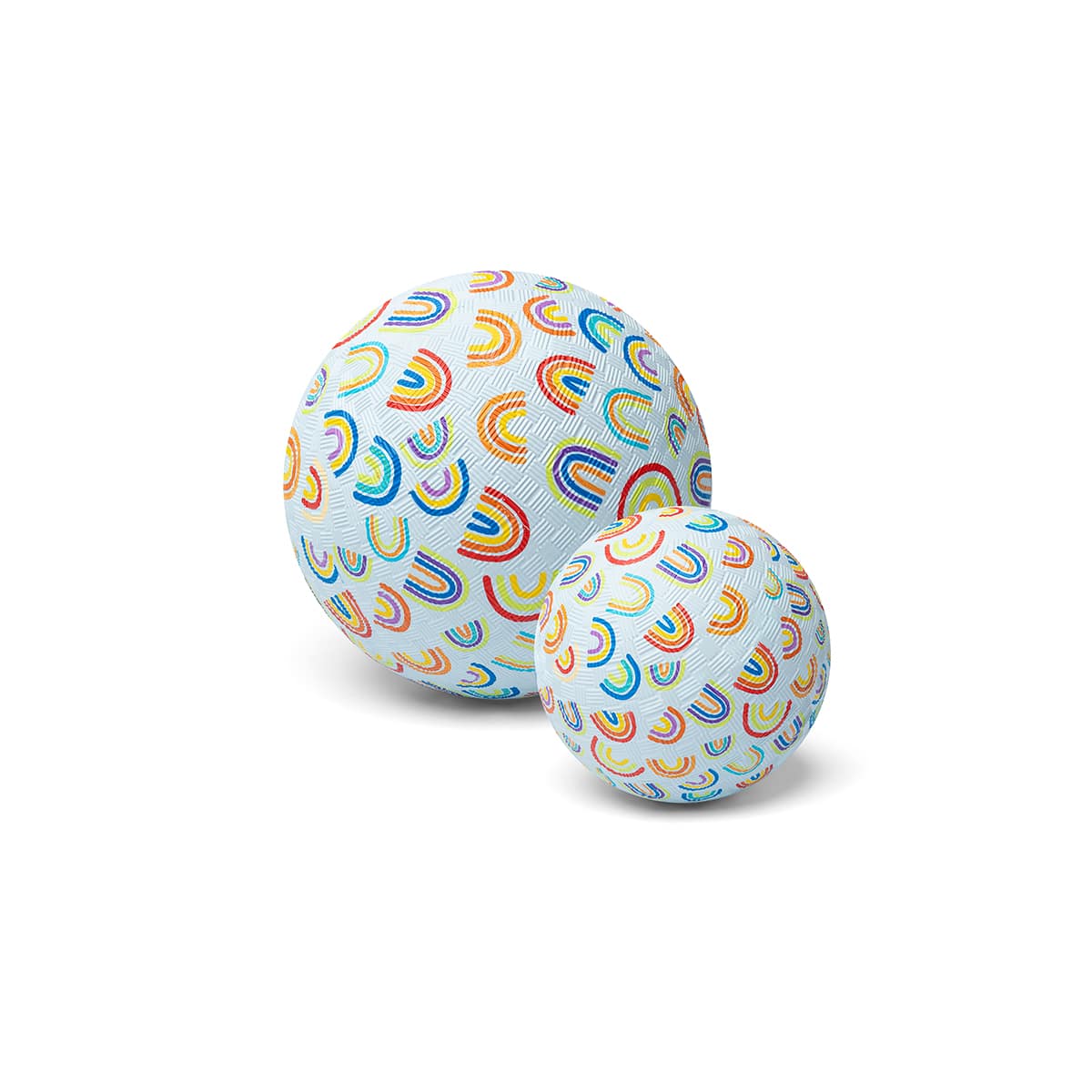 De Little L Rainbows bal is een stevige en veilige rubberen speelbal voor actief spel, zowel binnen als buiten. Dankzij het duurzame materiaal en het handzame formaat ligt de bal perfect in kleine kinderhanden en nodigt hij uit tot uren speelplezier.
