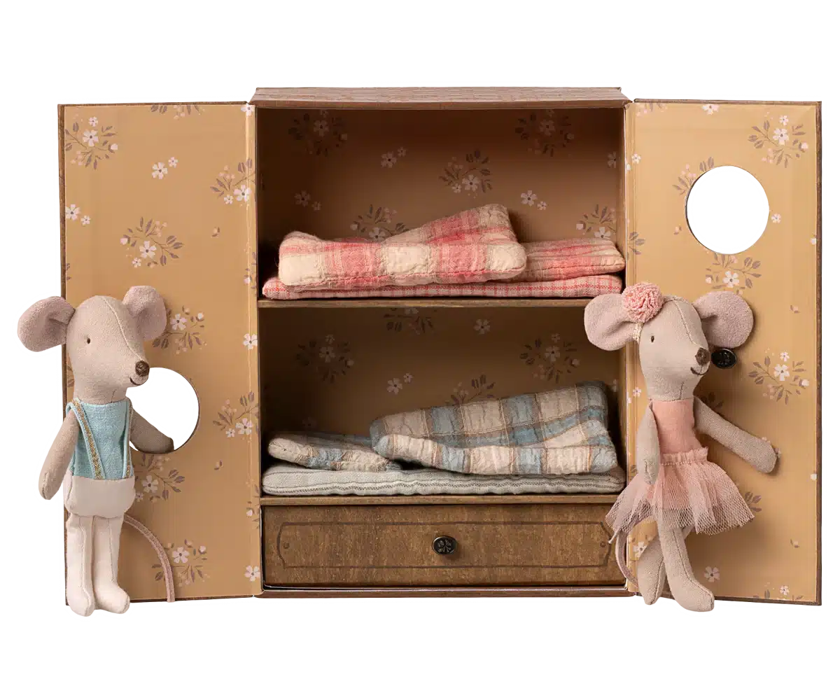 Maileg Ballet mice in dance studio, Little sister and brother. Open de deuren van deze magische doos en verken een wereld van dans, sterrenstof en verhalen vertellen. Deze set bevat een papieren doos, die zowel een dansstudio als een gezellig muizenhuis is, evenals twee muizen die urenlang dansen in hun prachtige kleren zijn gekleed. Spaar alle Maileg muizen, een prachtig cadeau voor jong en oud!