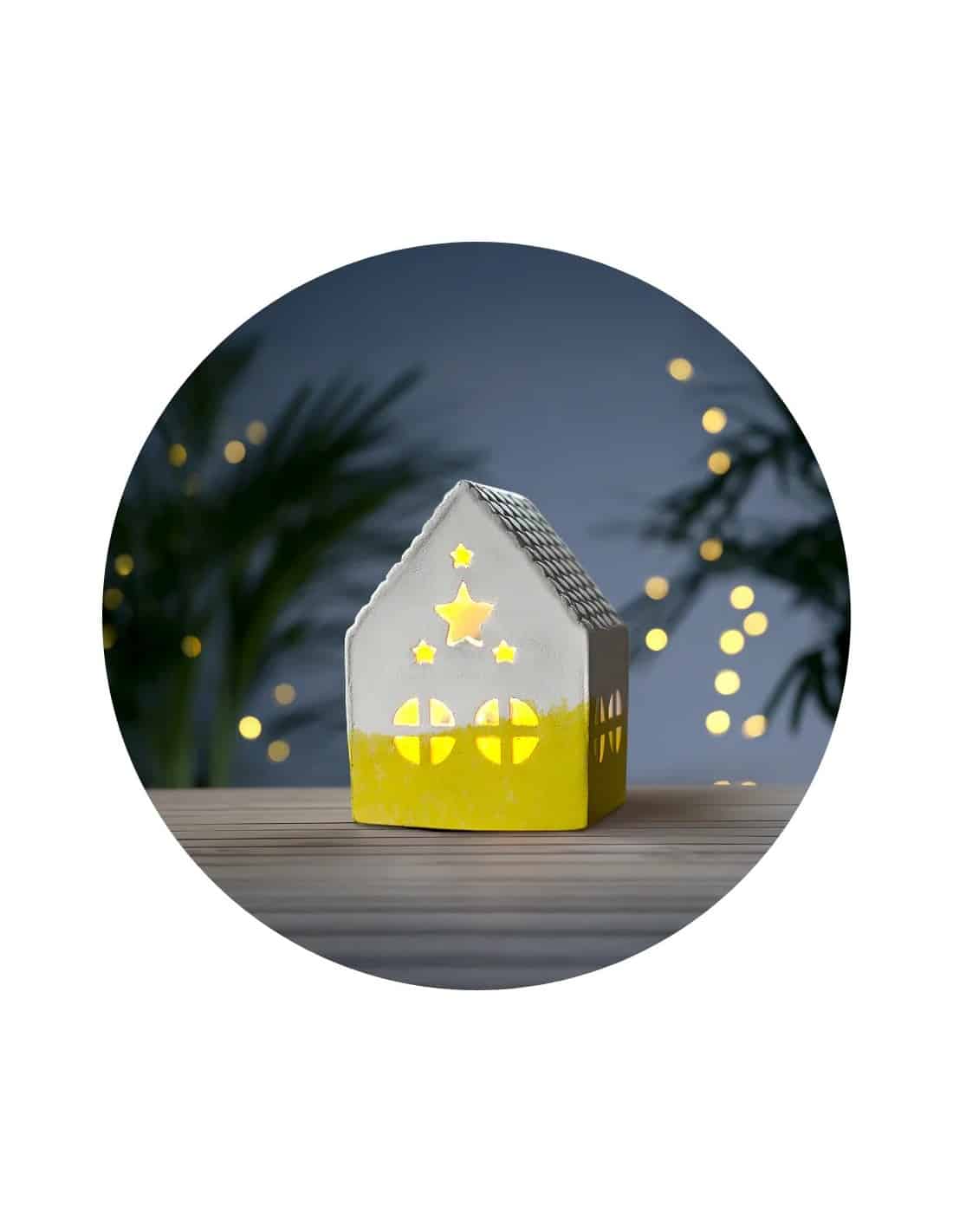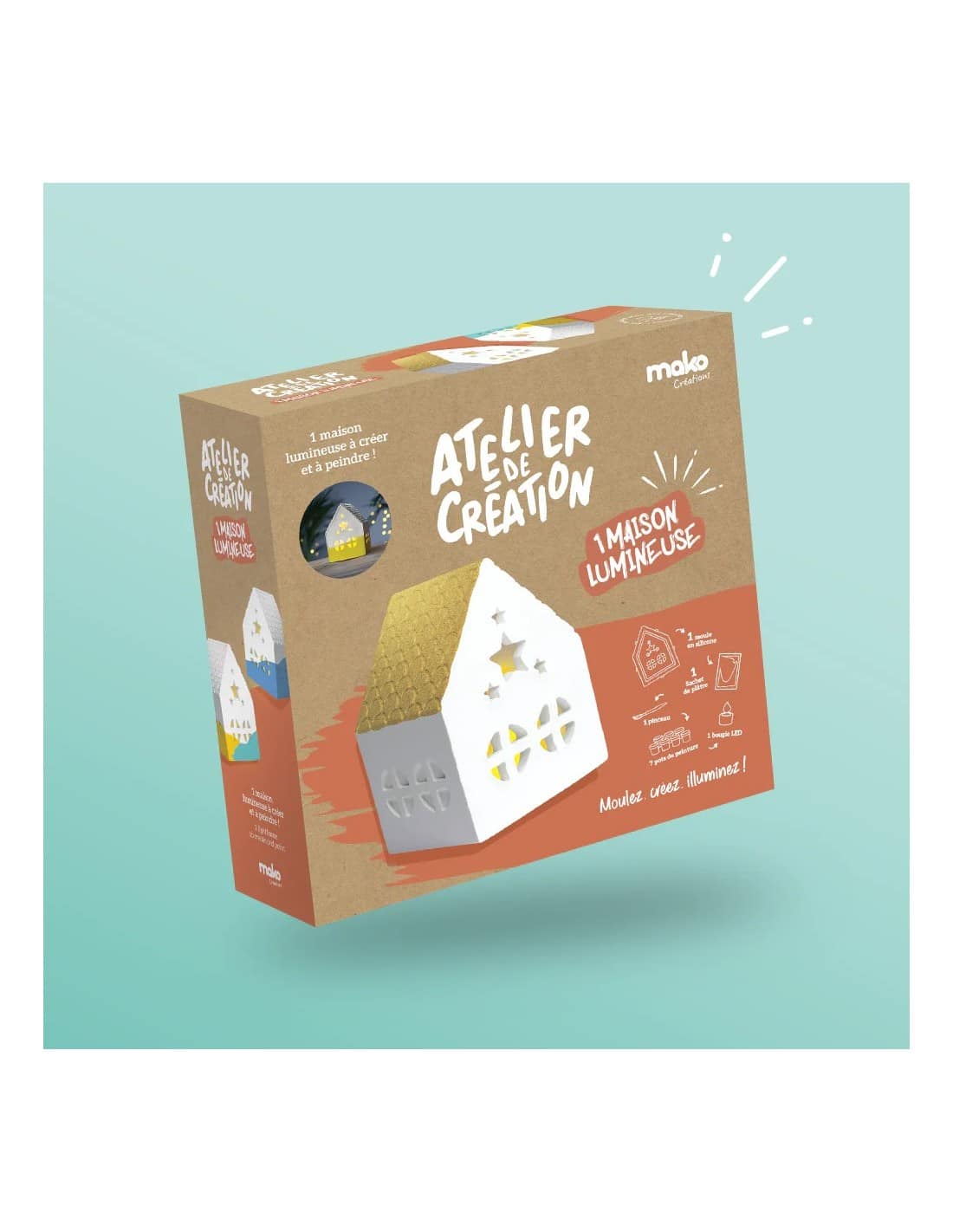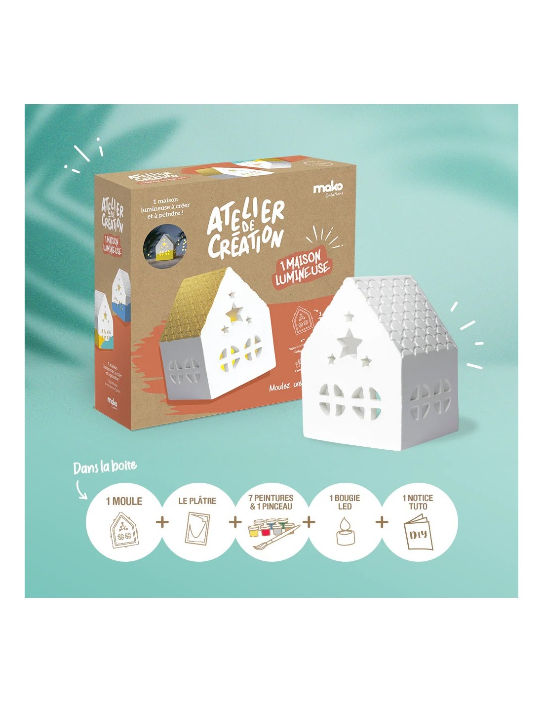 Mako Moulages – Waxinelicht huisje met led lichtje. ✓ 1 herbruikbare mal voor een waxinelicht huisje om te maken en te beschilderen ✓ Sneldrogend in maximaal 45 minuten gewoon aan de lucht (geen oven of droger nodig) ✓ 1 zakjes sneldrogend gips van 150 g ✓ 7 potjes gouacheverf op waterbasis (rood, geel, blauw, groen, wit parelmoer, zilver en goud) ✓ 1 kwast met houten handvat ✓ 1 handleiding met afbeeldingen