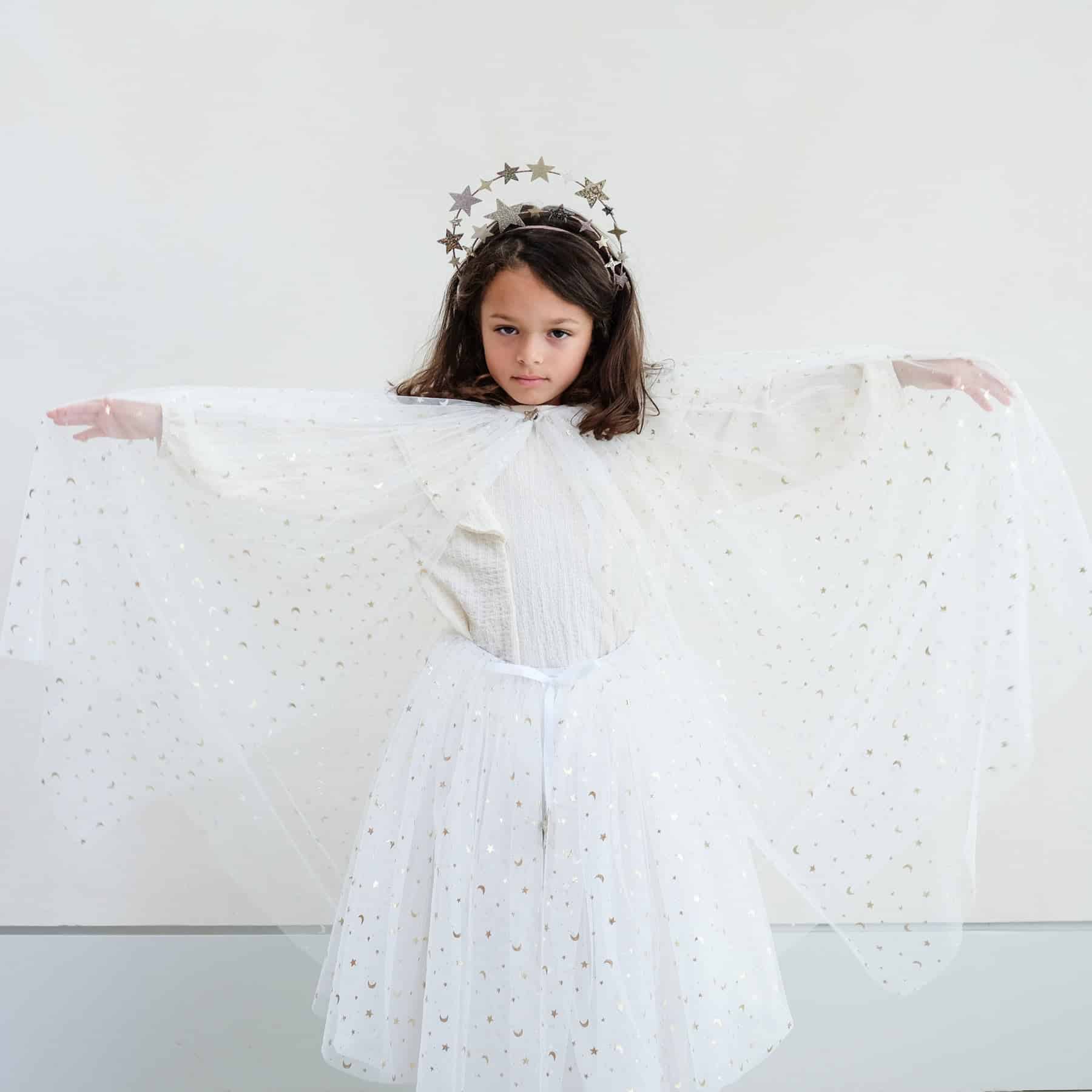 - Lagen van prachtige witte tule versierd met metallic gouden manen en sterren