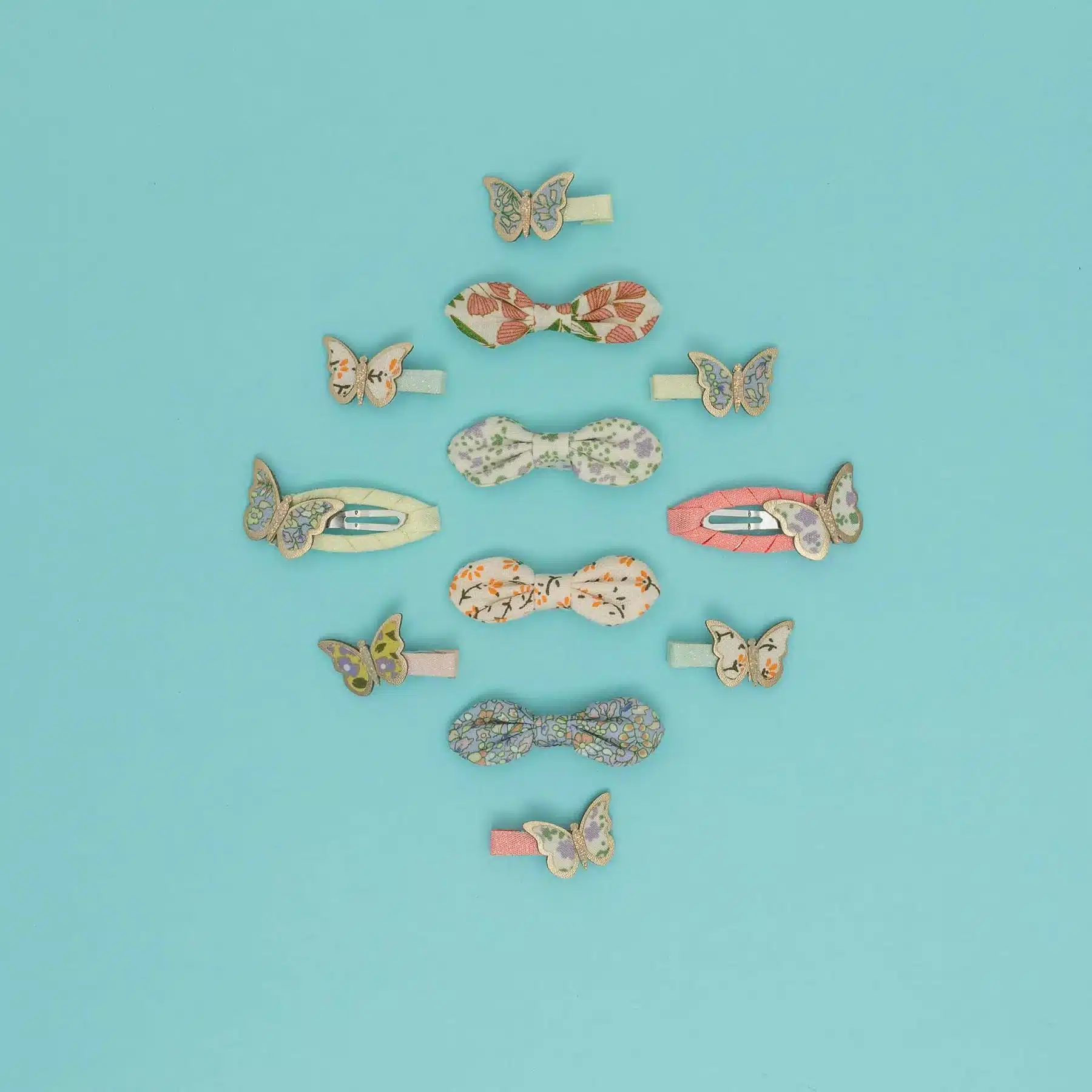 Mimi & Lula Floral Butterfly Clic Clacs. Voeg een vleugje plezier toe met onze Floral vlinderclic clacs! Elke sierlijke vlinder met gouden rand zit bovenop een contrasterende, kleurrijke clip, perfect voor kleine lokken en grote avonturen!