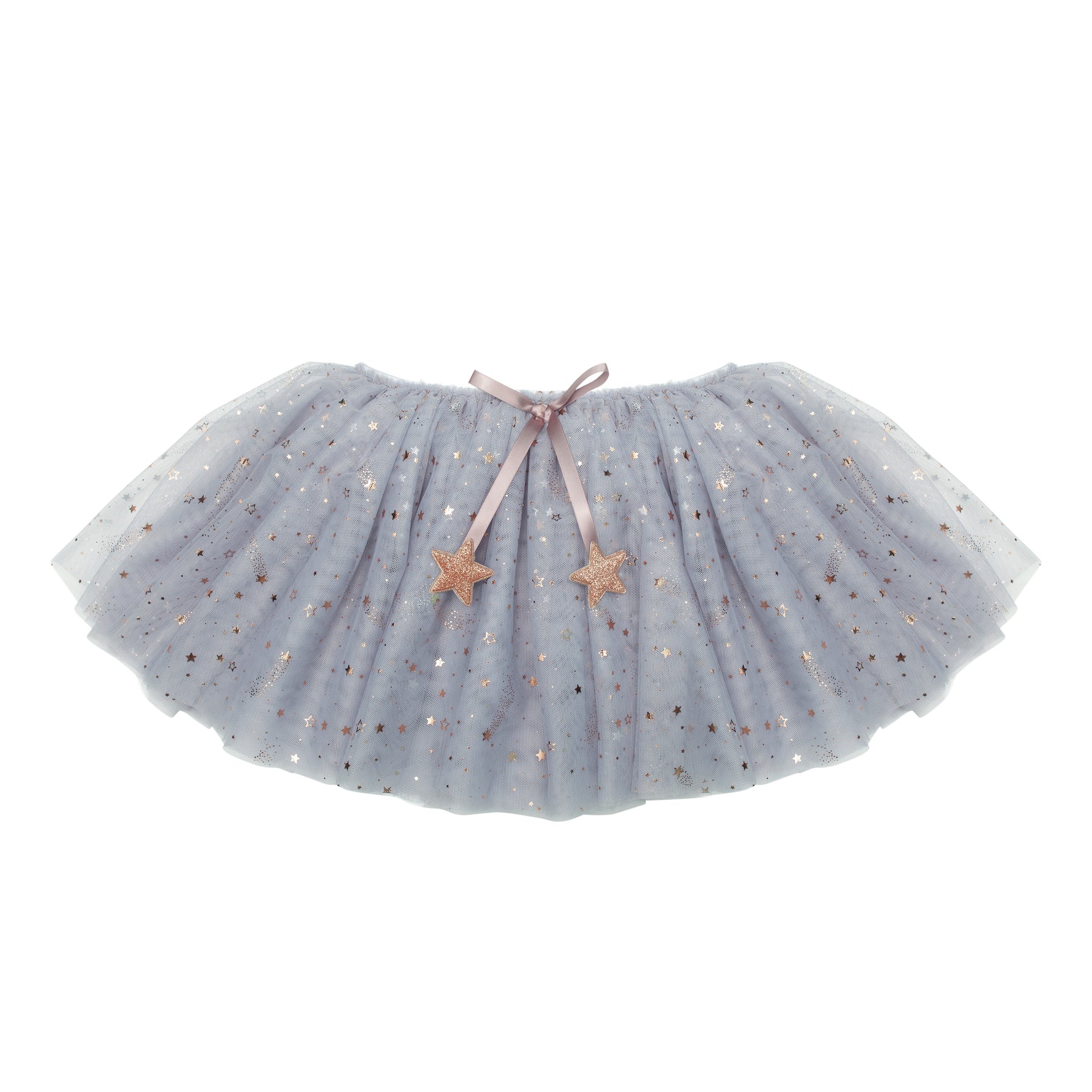Maak kennis met onze prachtige nieuwe Griselda tutu! Een hele bijzondere toevoeging aan ons Dress up / Halloween assortiment dit seizoen! Combineer met onze Griselda heksencape, hoed of toverstok voor het mooiste heksenkostuum dat je ooit hebt gezien! Geschikt voor kinderen van 3-10 jaar Lagen superzachte grijze tule verfraaid met sterrenbeelden van roségouden sterren, met een satijnen strik met roségouden glitter sterbedels Elastische tailleband van ca. 52 cm breed Ongeveer 30 cm lang Getest op veiligheid Alleen schoonvegen