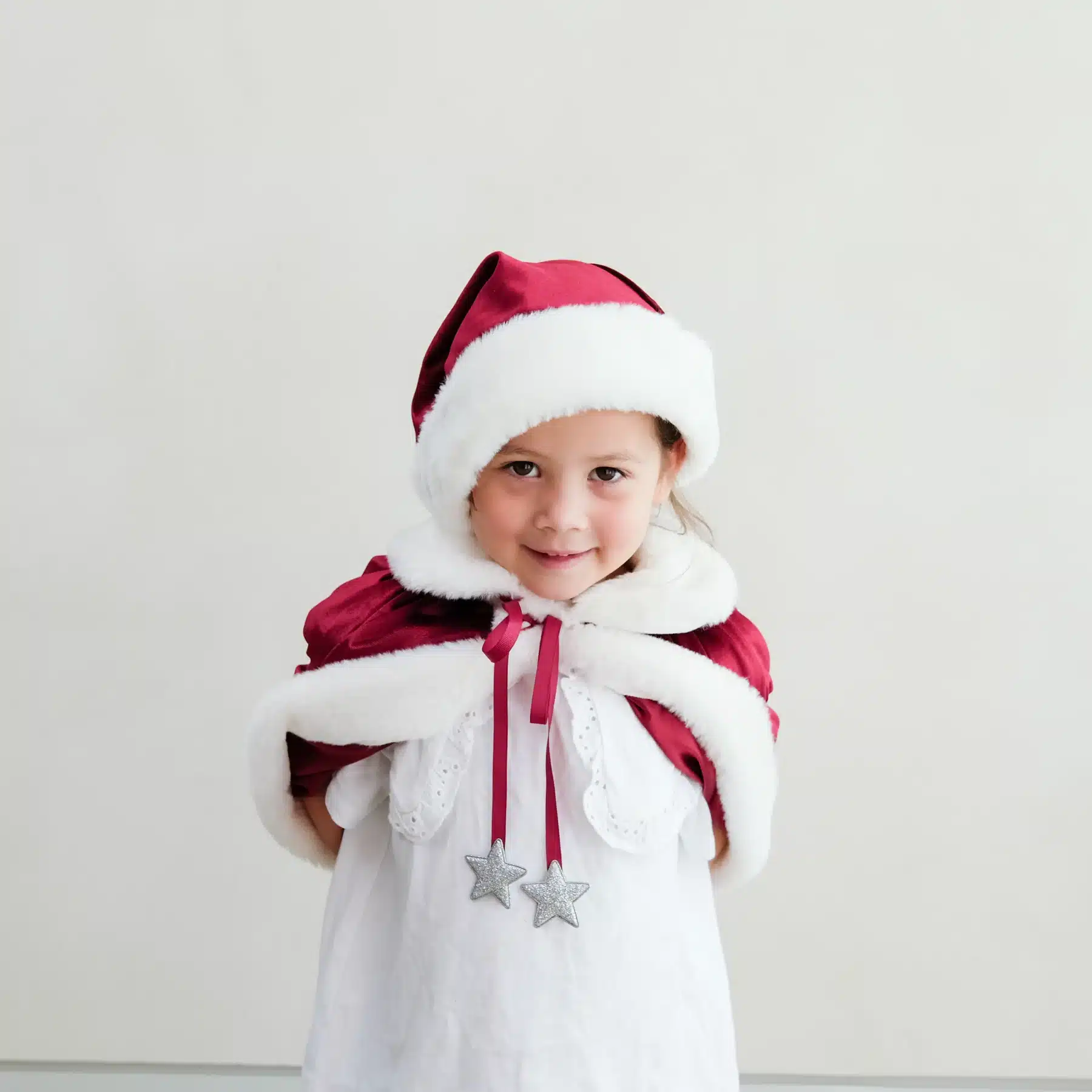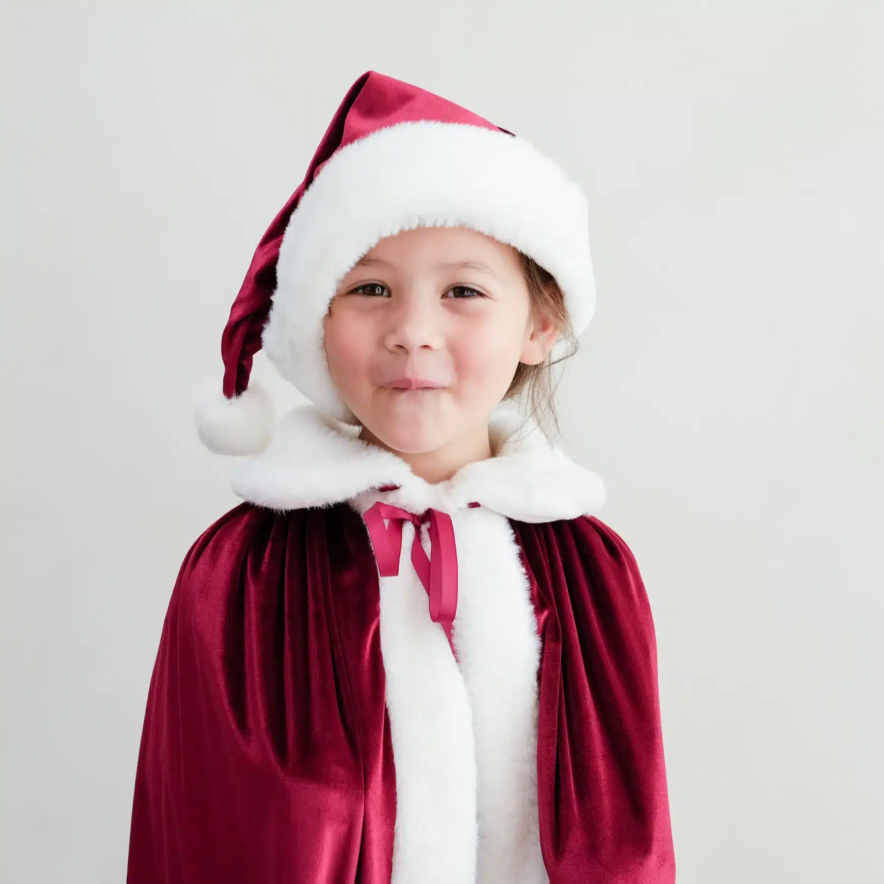 Onze luxueus zachte fluwelen kerstmuts is het perfecte accessoire voor uw kleintjes om tijdens de feestdagen te dragen! Combineer hem eens met onze kerstcape voor een echt vrolijke look! Geschikt voor kinderen van 3 tot 10 jaar Alleen schoonvegen!