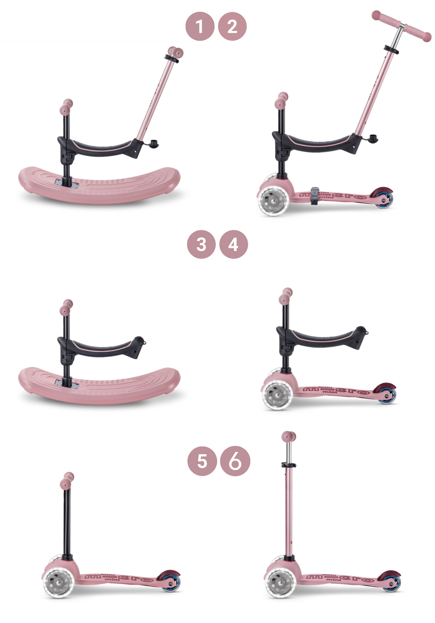 De Mini Micro 6in1 Rock & Go LED Groen is de ultieme meegroei-step voor kinderen van 1 tot 7 jaar.