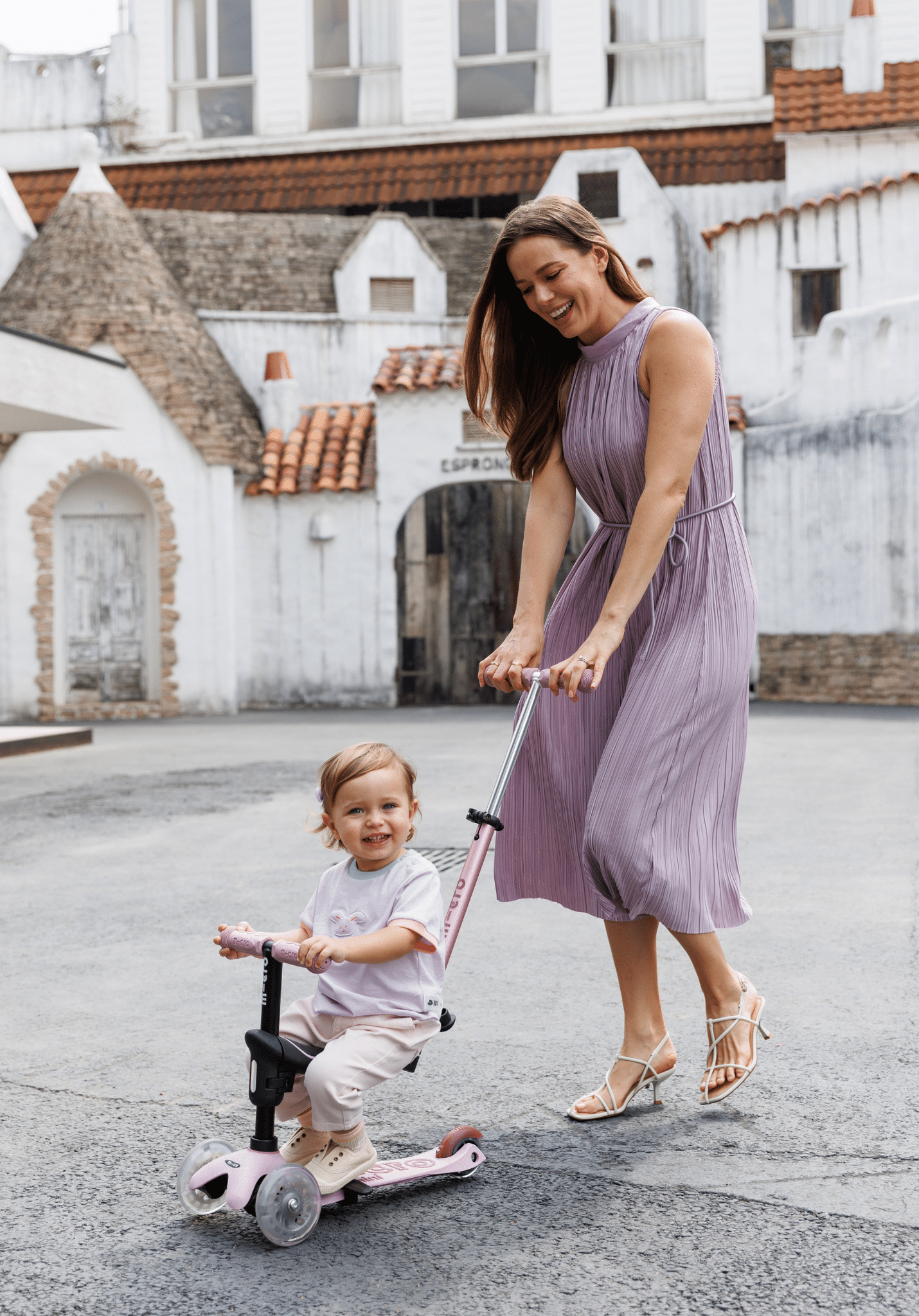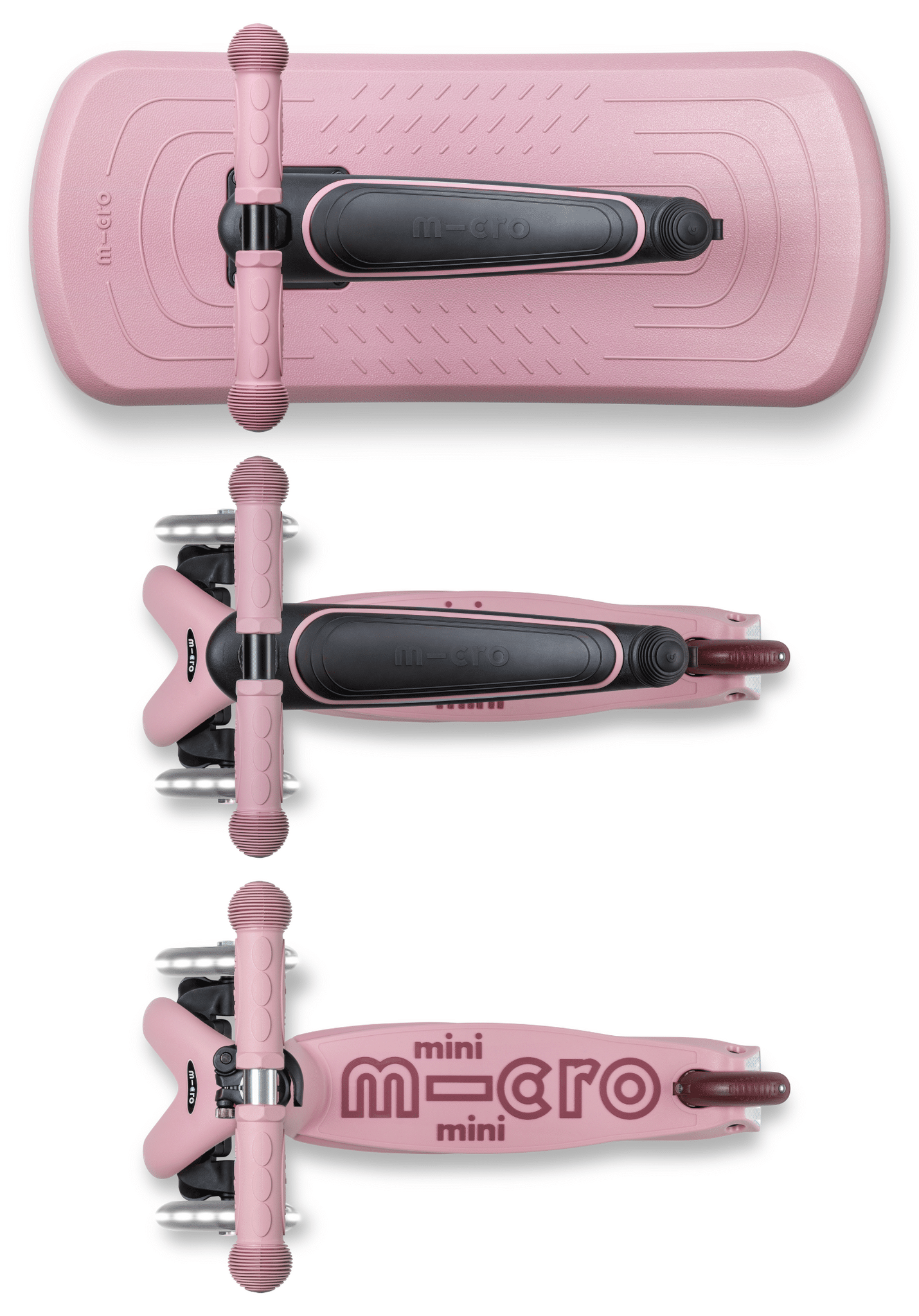 - Van 2 t/m 7 jaar: als echte step met verstelbaar T-stuur (hoger dan bij de Mini Micro Deluxe)