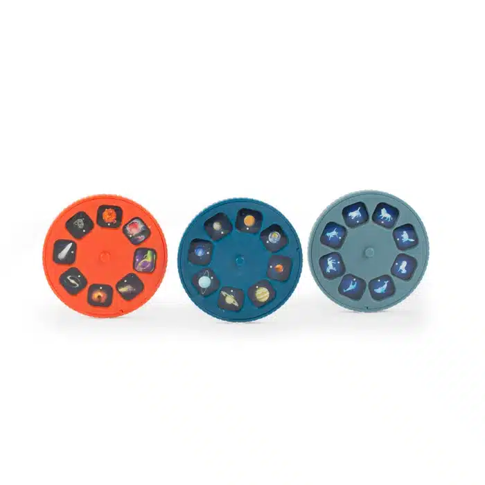 De set bevat 3 schijfjes met elk 8 dia’s, waarmee kinderen de wonderen van het heelal kunnen verkennen. Dankzij de hoogwaardige projectiebeelden wordt elk moment een indrukwekkende ontdekkingstocht.