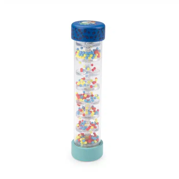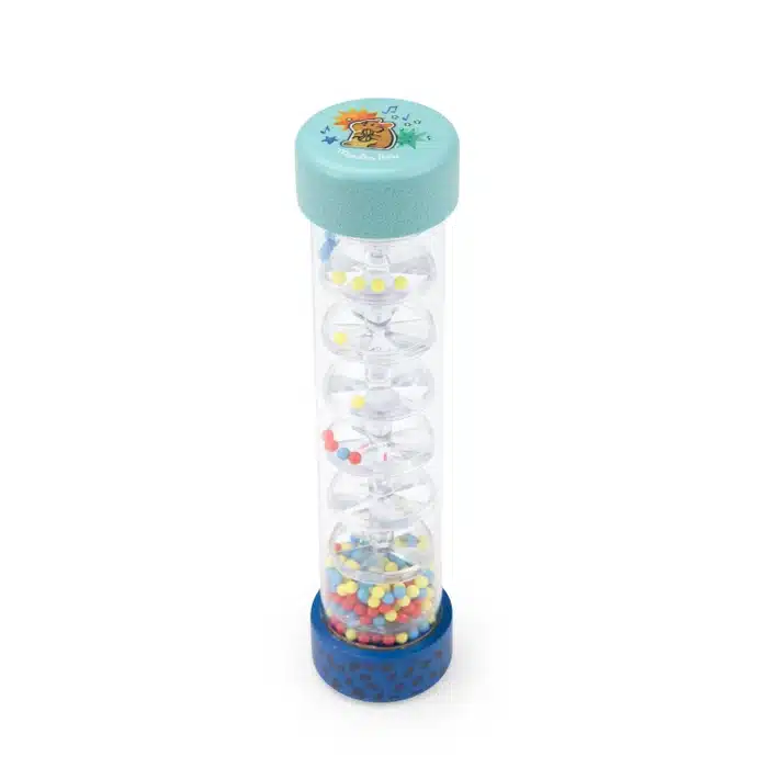 Moulin Roty Regenstok Puce & Pilou. De Puce & Pilou regenstok van Moulin Roty is een hulpmiddel voor de sensorische ontwikkeling dat peuters meeneemt naar een rustgevende en muzikale wereld. Hij is gemakkelijk te hanteren en kantelbaar, waardoor kleine kraaltjes door het buisje vrijkomen. Dit produceert een zacht regengeluid dat de aandacht trekt en de oren van baby’s streelt.