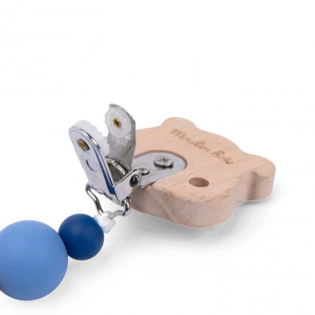 Moulin Roty Speenketting Hamster Puce & Pilou. Speenkoord van hout en siliconen voor hamsters, zodat je de speen van je baby nooit meer kwijtraakt. De siliconen kralen zijn veilig, hij kan ermee spelen en erop kauwen. Om aan de kleding van de baby te bevestigen.