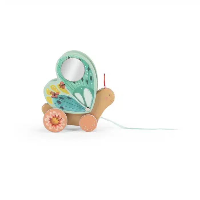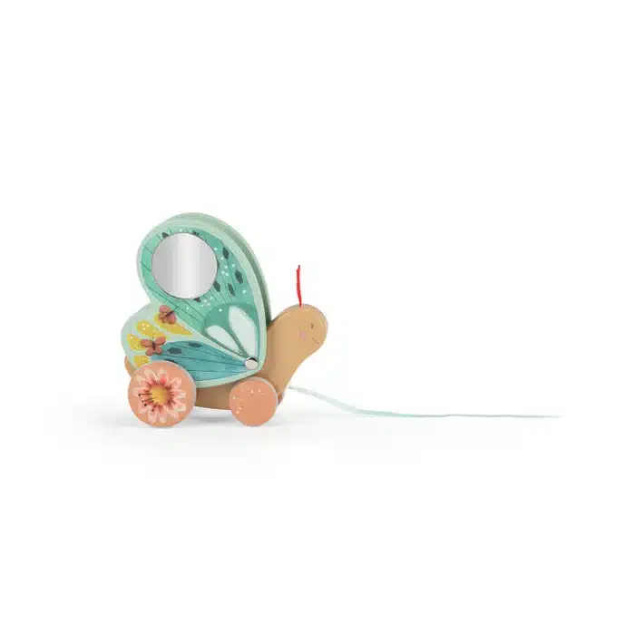 Wanneer de vlinder vooruit wordt getrokken, klapperen zijn vleugels vrolijk mee. Dit trekspeelgoed voor baby’sstimuleert de motorische ontwikkeling en moedigt kinderen aan om te lopen, trekken en ontdekken.