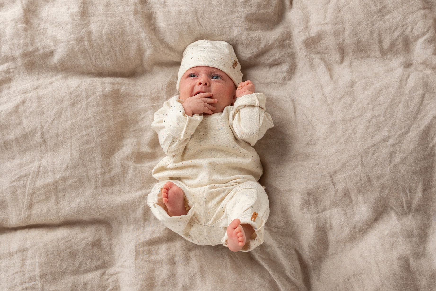 De Nixnut Born Hat Ecru Speckle is een zacht en comfortabel newborn mutsje met een subtiele speckle print. Gemaakt van fijne jersey speckle stof, voelt het mutsje prettig aan op de gevoelige babyhuid. Een tijdloos en lief item van Nixnut, perfect als kraamcadeau of voor de eerste dagen van je newborn. Te shoppen in onze webshop of kom gezellig langs in onze winkel in Amsterdam West.