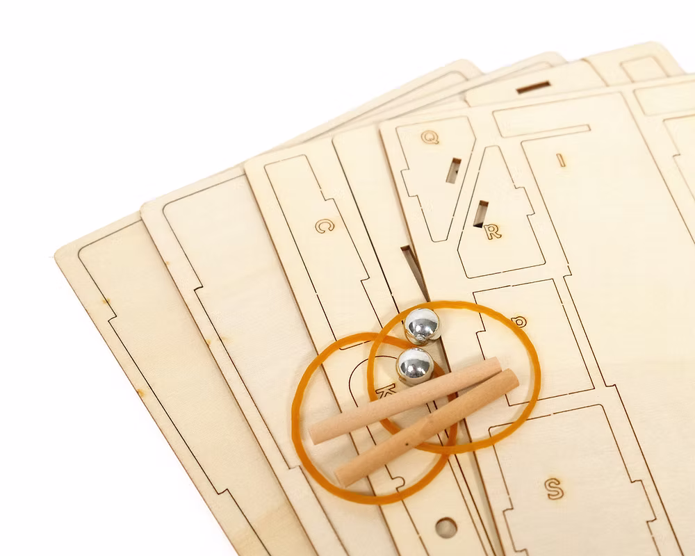 Met meer dan 20 onderdelen en duidelijke stap-voor-stap instructies bouw je helemaal zelf een volledig werkende flipperkast. Dankzij de eco-vriendelijke, laser-gesneden houten onderdelen ontstaat een stevig en duurzaam eindresultaat dat je bovendien volledig kunt personaliseren met verf (niet inbegrepen). En het beste van alles: geen batterijen nodig – puur mechanisch plezier!