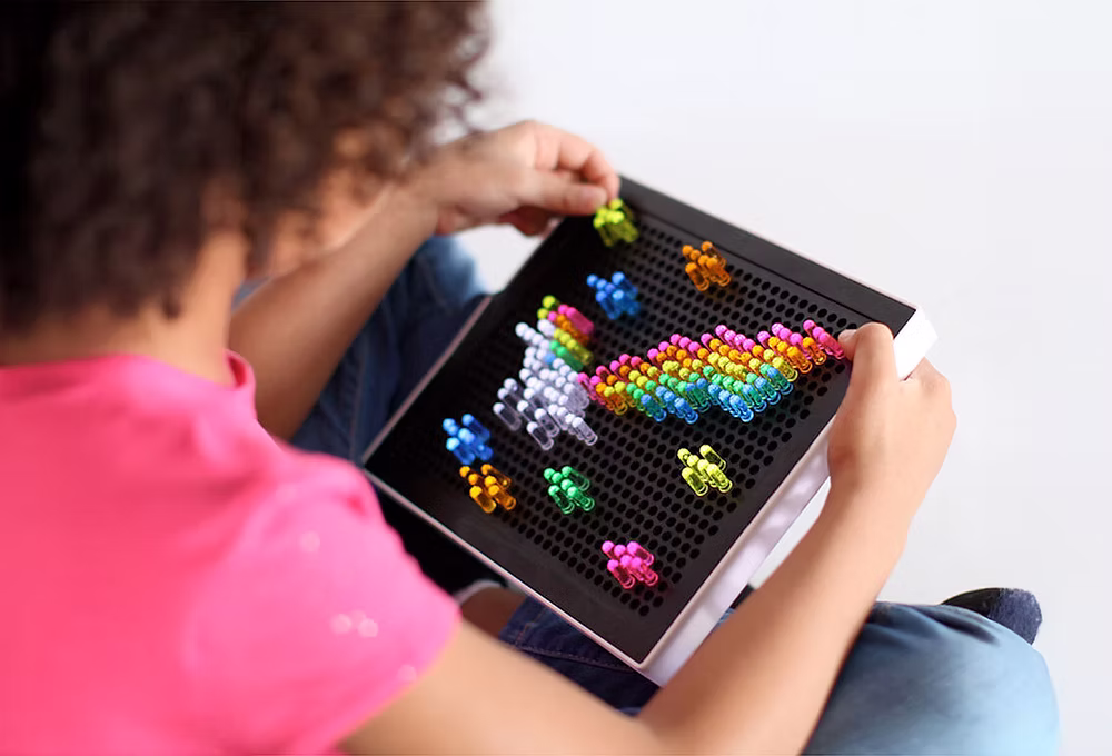 Dit kleurrijke DIY lichtbord maakt van elk idee een stralend kunstwerk. Steek de gekleurde pinnetjes in het verlichte bord en ontwerp je eigen patronen, figuren of woorden — van je naam tot vrolijke pixelafbeeldingen.