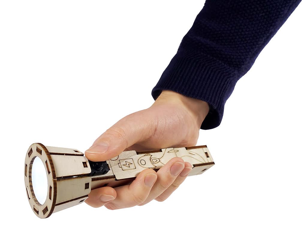 Met de STEM Wooden Torch bouw je stap voor stap een volledig functionerende houten zaklamp. Gebruik de meegeleverde tools, volg de onderdelen en zie je creatie tot leven komen zodra je op de aan/uit-knop drukt. Ideaal voor kleine uitvinders, techliefhebbers en knutselaars die graag iets échts maken.