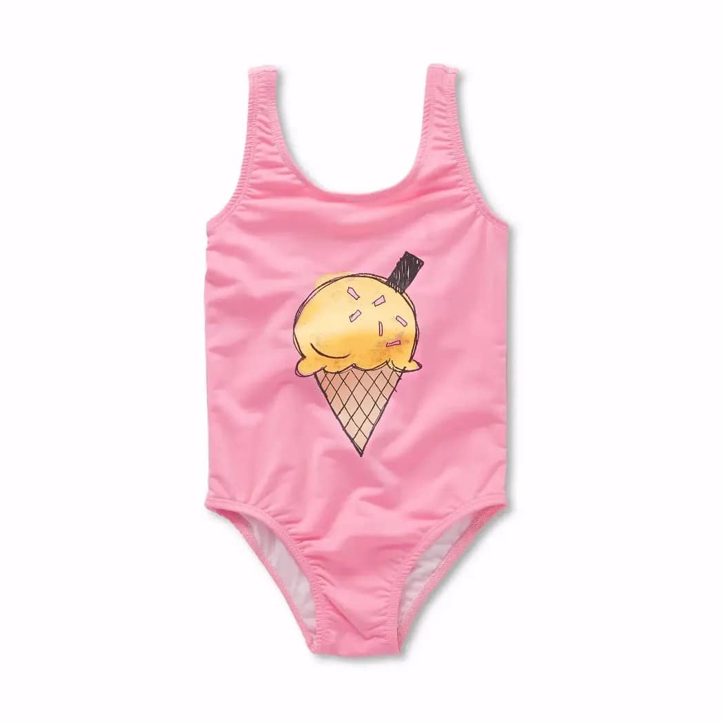 Sproet & Sprout Girls Swimsuit Pink Podium Pink. Zoet als de zomer! Dit podiumroze badpak met een oversized ijsprint is echt een showstopper. Gemaakt voor eindeloos spelen, het is comfortabel, snel drogend en ontworpen om kinderen koel te houden in en buiten het water. Onze UV-badkleding (UPF50+) houdt uw kind veilig terwijl ze vrij genieten van de zon, het strand en het water.