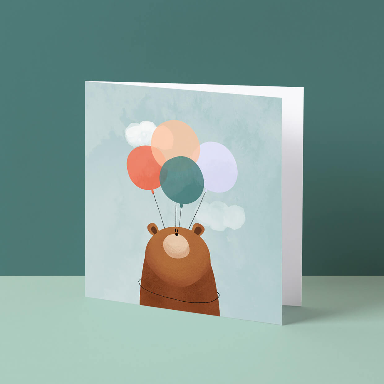 Is je neefje jarig, je buurvrouw geslaagd of je oma met pensioen? Dit lieve beertje is al helemaal in de feeststemming. Een vrolijk kaartje voor elke gelegenheid waarbij iets te vieren valt.