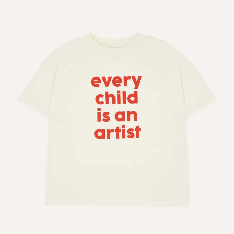 Op de voorkant staat de inspirerende uitspraak “every child is an artist” een mooie boodschap die perfect past bij de speelse en creatieve visie van The Campamento. De korte mouwen en afgeronde hals maken dit T-shirt tot een fijn en luchtig item om de hele zomer te dragen.