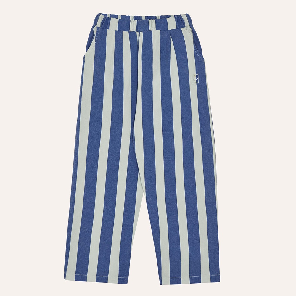 De The Campamento Blue Stripes Washed Trousers zijn een karaktervolle en veelzijdige broek voor kinderen, perfect voor het zomerseizoen. Deze broek is gemaakt van een katoenen geweven kwaliteit en heeft een zware wassing, waardoor elk kledingstuk een unieke en eigen uitstraling krijgt.
