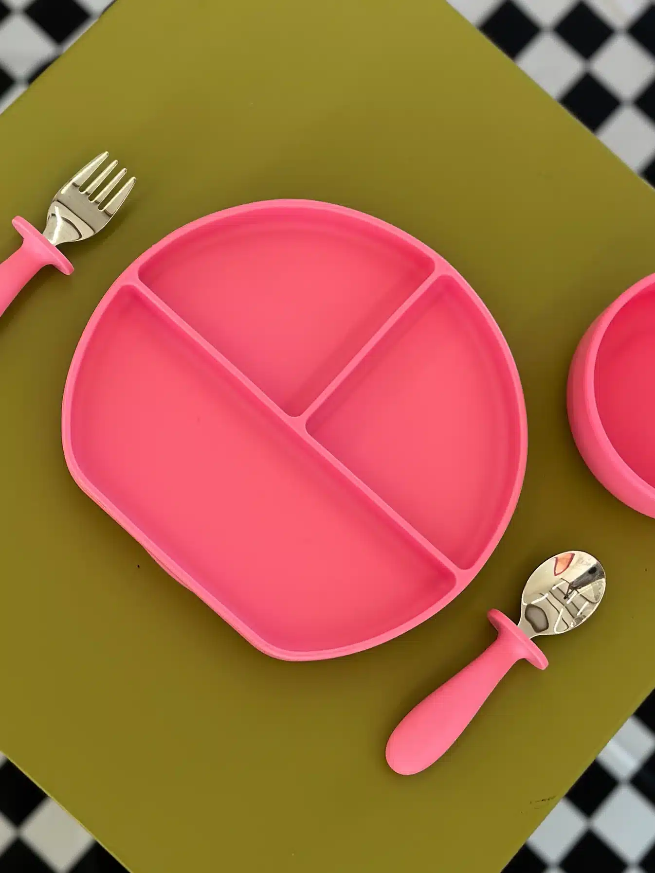 Tress Tableware Kids The Plate Bubbly Pink. Maak van elke maaltijd een feest met TRESS happy servies! Alleen in vrolijke kleuren, onze siliconen plaat is ontworpen om lang mee te gaan. Onze borden zijn vaatwasser- en magnetronbestendig. De speciale ovale vorm voorkomt morsen en de scheidingsdelen zijn ontworpen om het eten naar wens te verdelen.