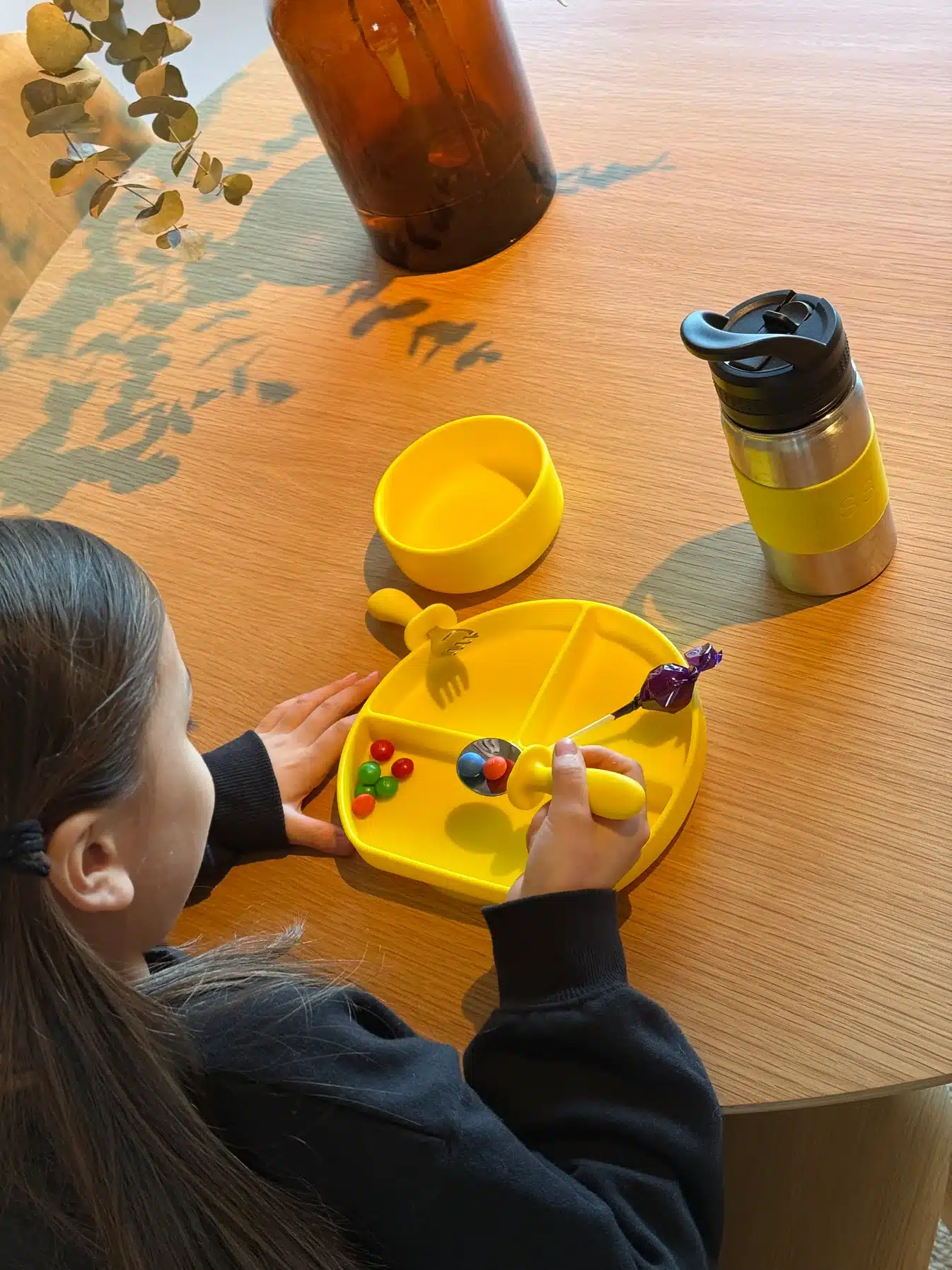 Alleen in vrolijke kleuren, onze siliconen plaat is ontworpen om lang mee te gaan. Onze borden zijn vaatwasser- en magnetronbestendig.