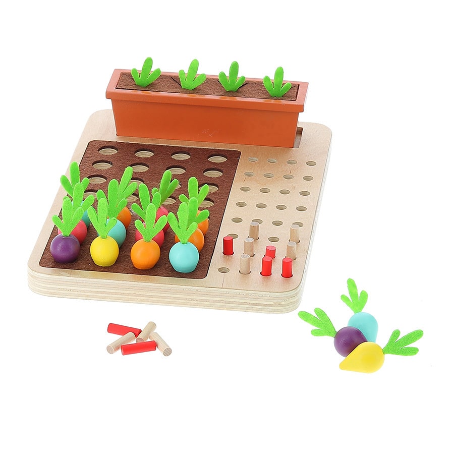 Door steeds opnieuw worteltjes op het speelveld te plaatsen, ontdek je stap voor stap welke worteltjes op de juiste plekstaan. Net zo spannend als het bekende code-krakerspel, maar dan in een vrolijk “moestuin” thema! 🥕🌿