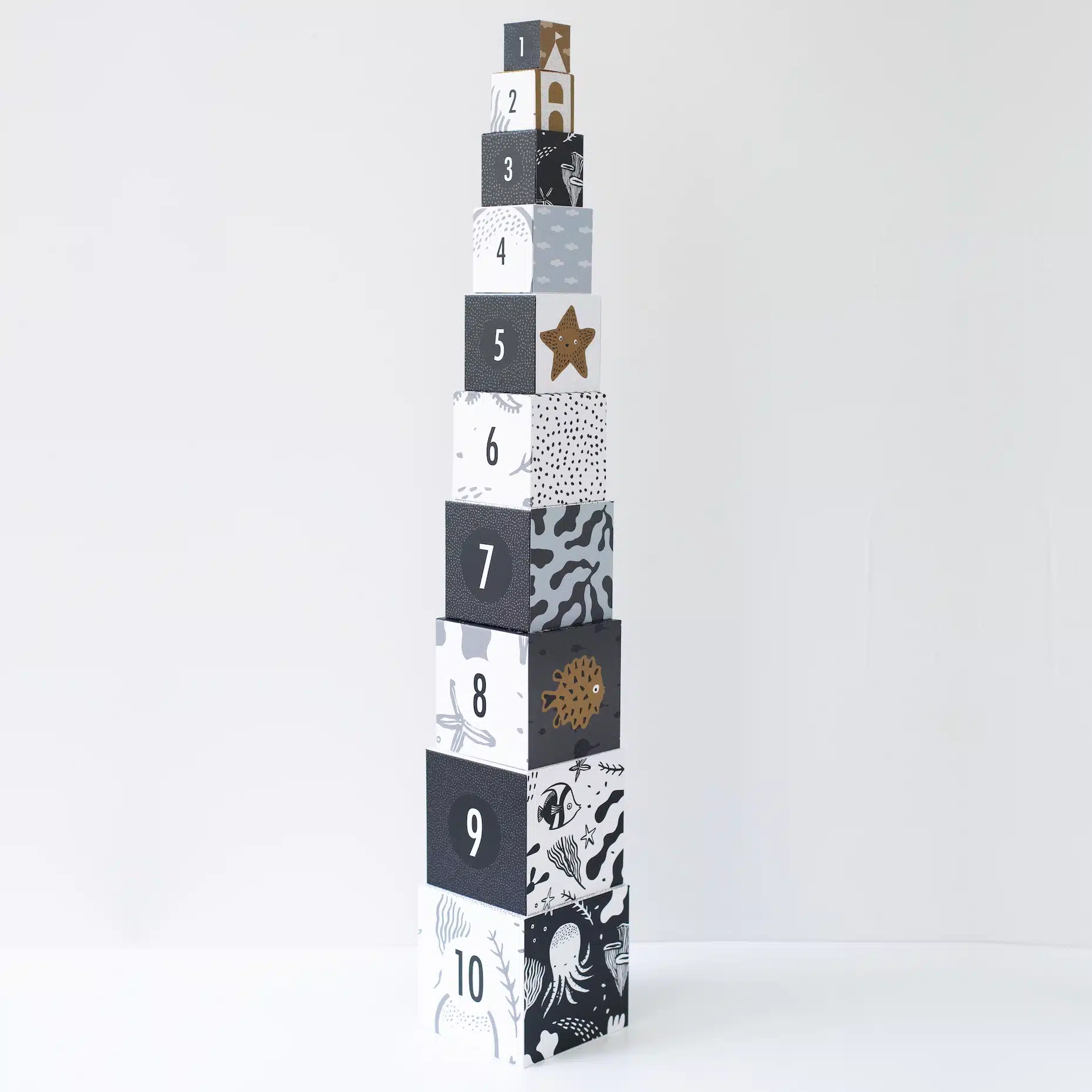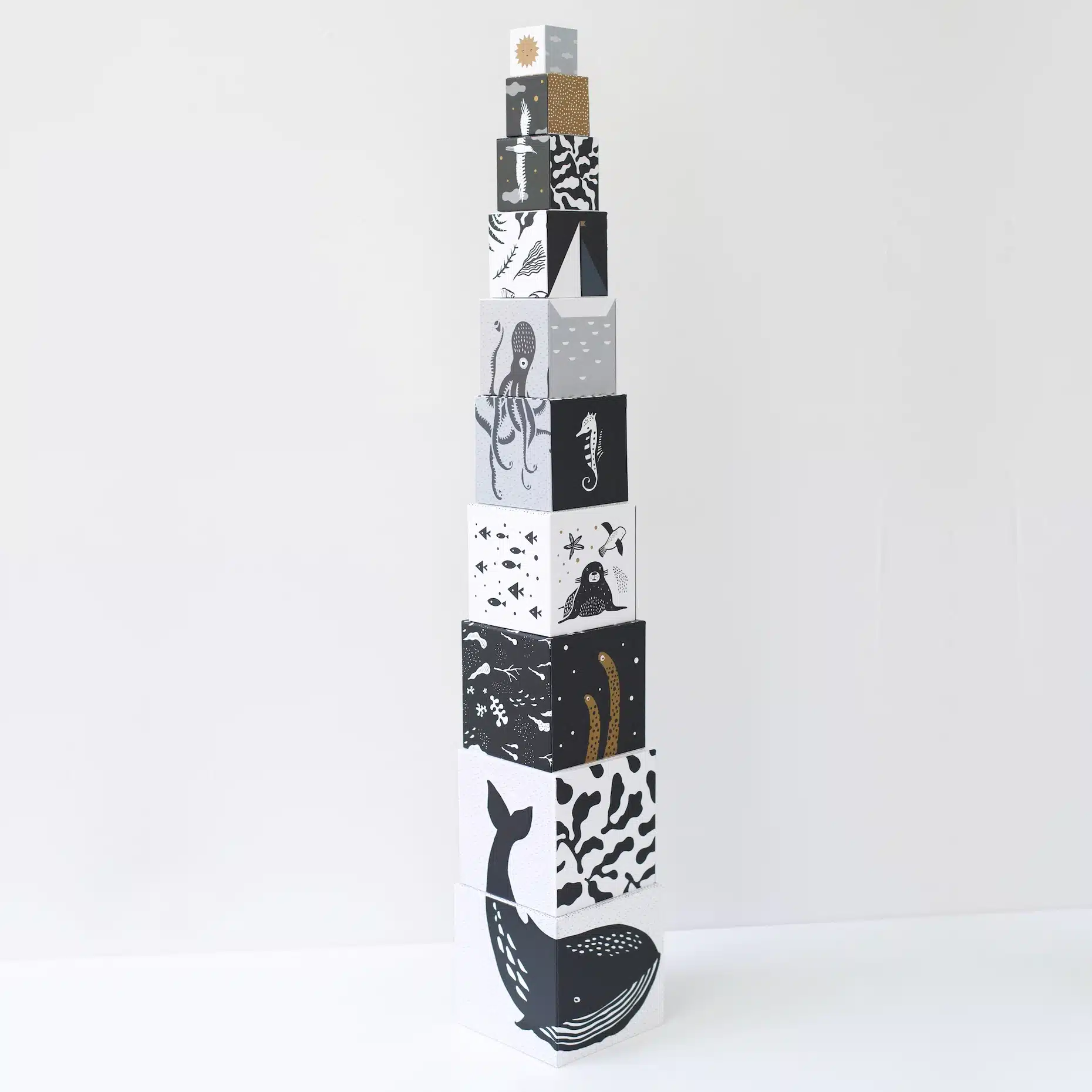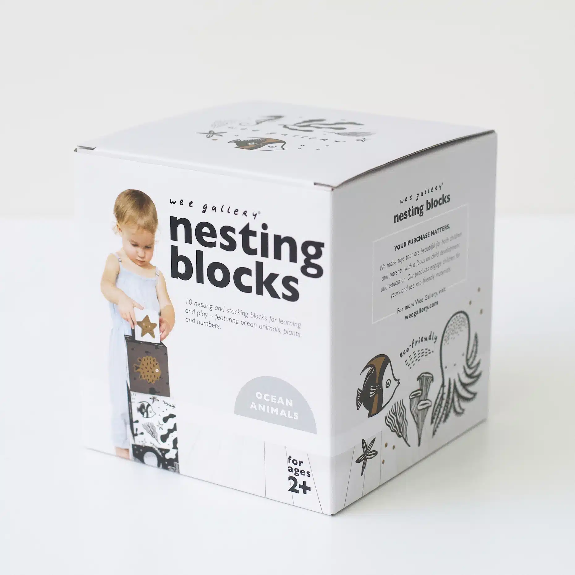 Laat de fantasie de vrije loop met deze Wee Gallery Ocean Animals Blocks. Een set van 10 stevige stapelblokken met speelse zee-dieren en hoog contrast illustraties – perfect voor kleine ontdekkers.