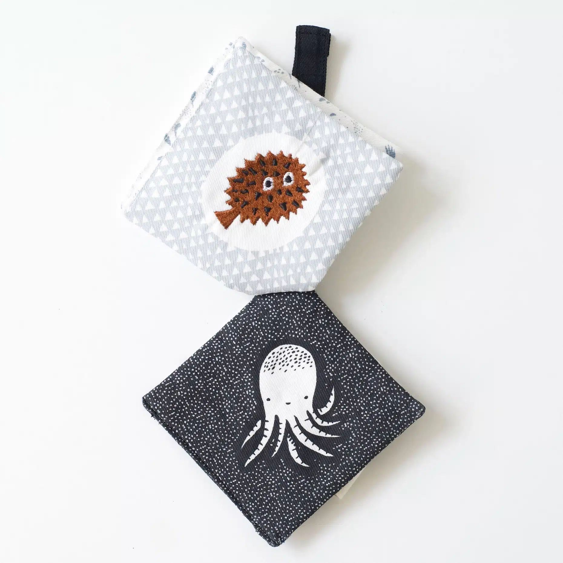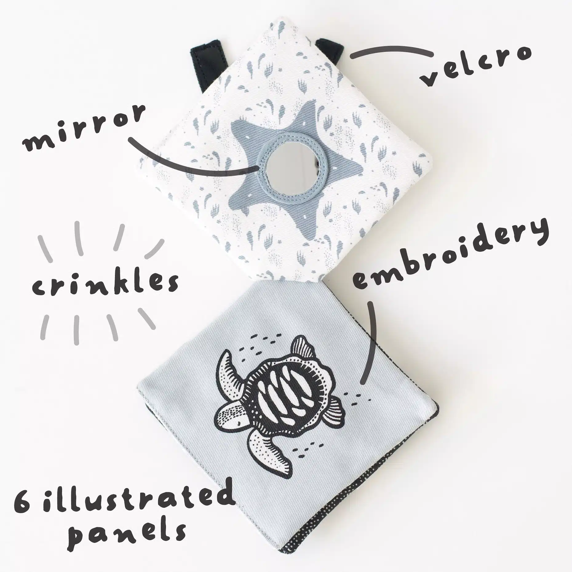 Laat je baby spelenderwijs de natuur ontdekken met dit Ocean crinkle boekje van Wee Gallery. Dit zachte, knisperende buggyboekje is perfect voor nieuwsgierige oogjes en kleine handjes.