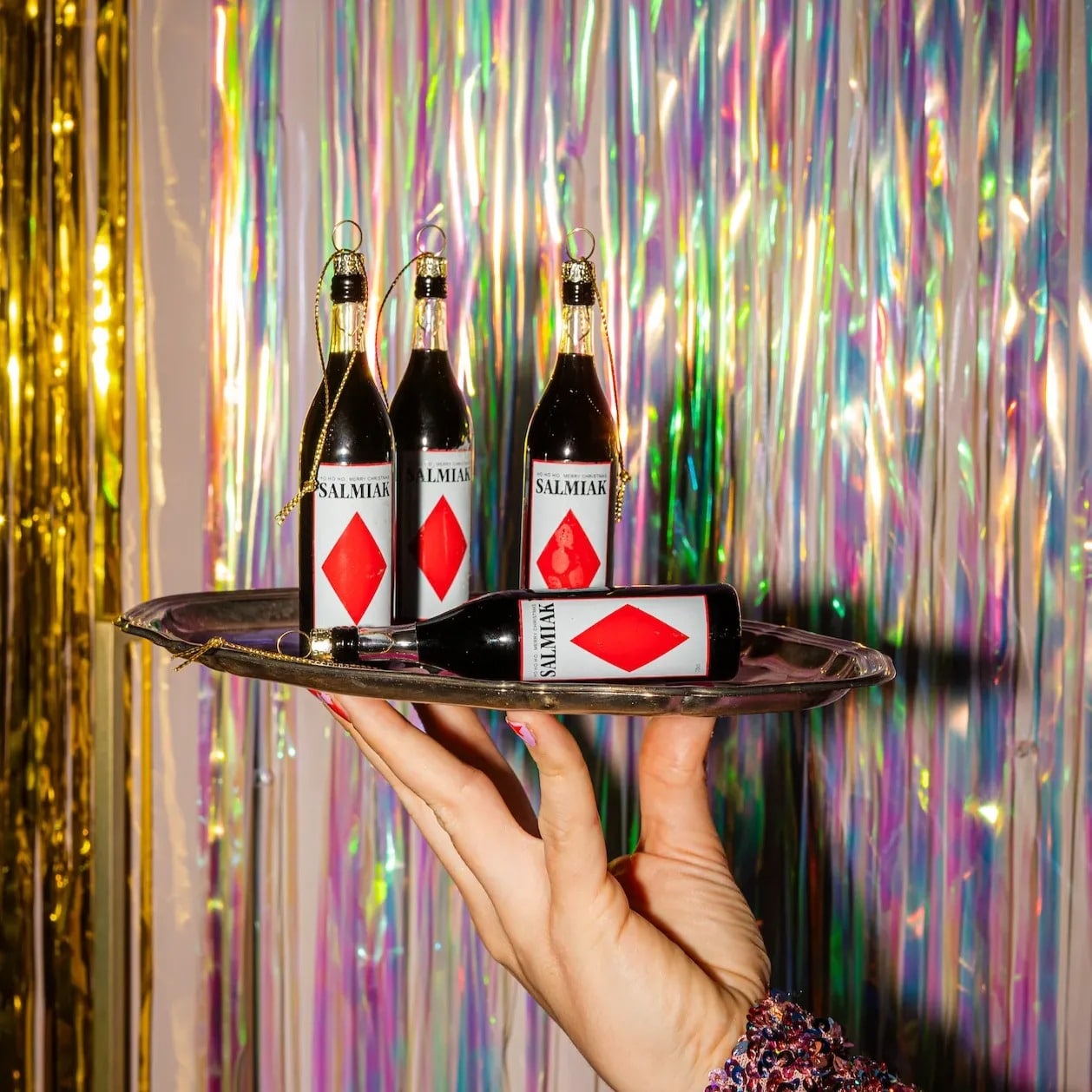Yup in de Boom Salmiak kerstornament. Breng een stoere, unieke flair in je kerstboom met het Salmari kerstornament van het merk Yup in de boom. Deze bijzondere kerstbal is geïnspireerd op het iconische salmari-drankje. Deze kerstbal voegt een eigentijdse, gewaagde touch toe aan je kerstdecoratie en is perfect voor liefhebbers van karakteristieke en opvallende versieringen. Ga voor een kerstboom vol persoonlijkheid met het Salmari kerstornament van Yup in de boom!